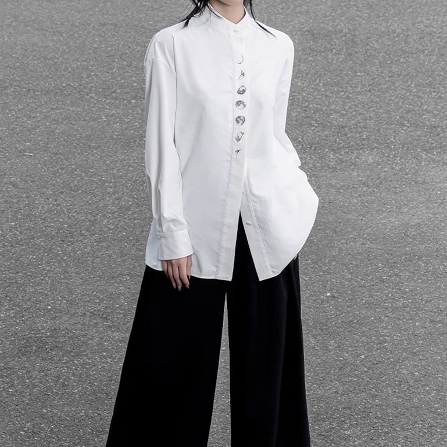 SEASONZ チャイナ風 大人ゴシック 云?斜簪 長袖シャツ スタンドカラー 月 白 ホワト 星柄