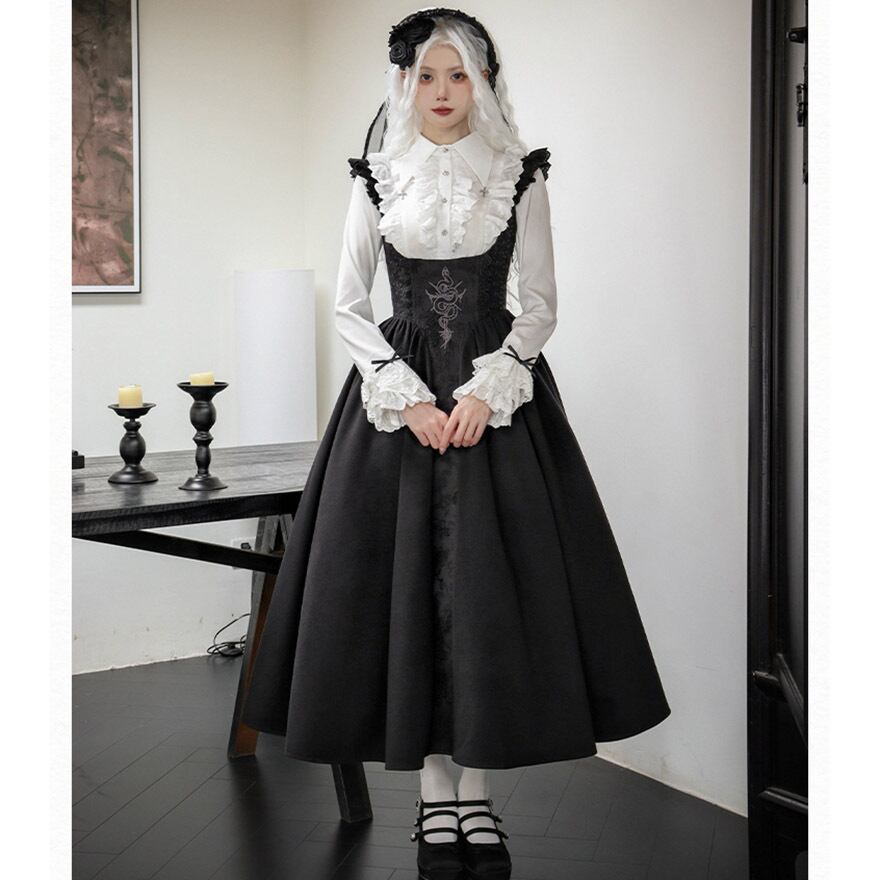 SEASONZ ゴスロリ PUJI オリジナル ジャンパースカート ロング丈 刺繍 ダークファッション レース 病み可愛い