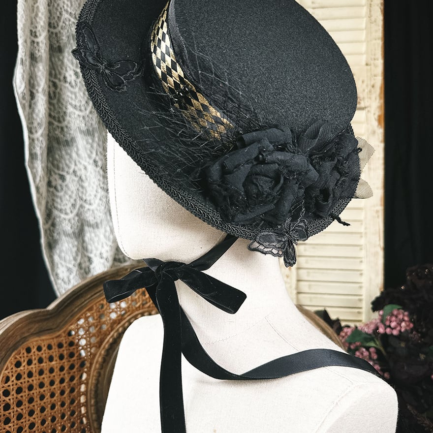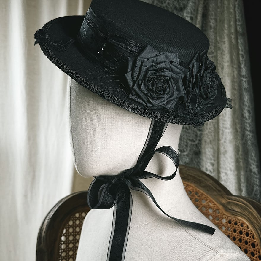 SEASONZ SweetDreamer シルクハット 帽子 ローズ リボン エレガント フラットハット 薔薇 ゴシック イベント衣装 撮影会 舞台衣装 20代 30代