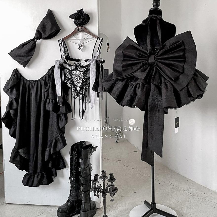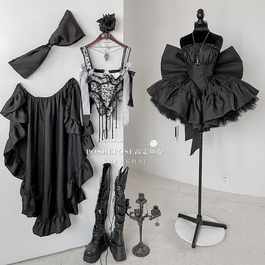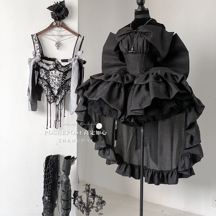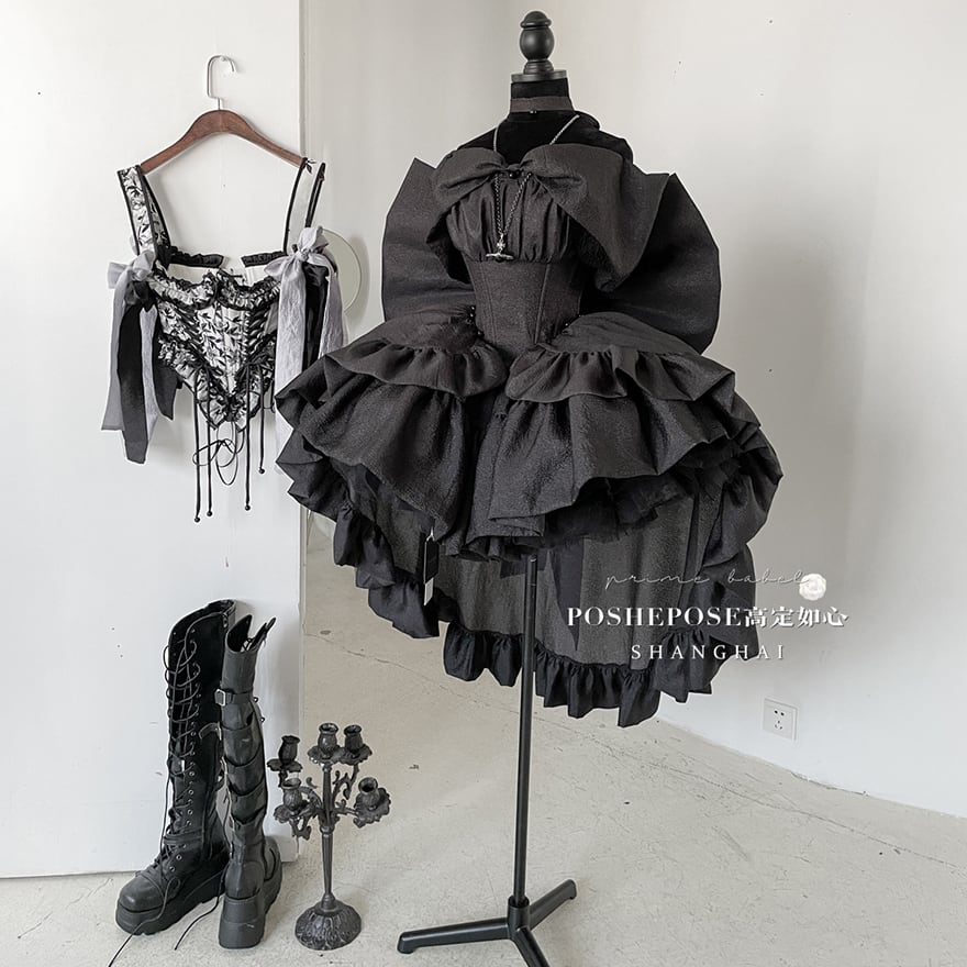 ロリータドレス パーティドレス プリンセスドレス ドレス ブラックドレス イベント ステージ衣装