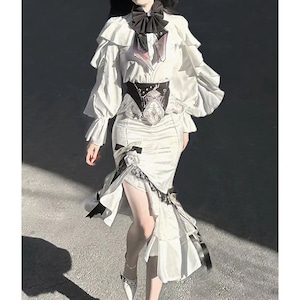 トップス、ミニスカート、腰飾りがセットの3点セットです。