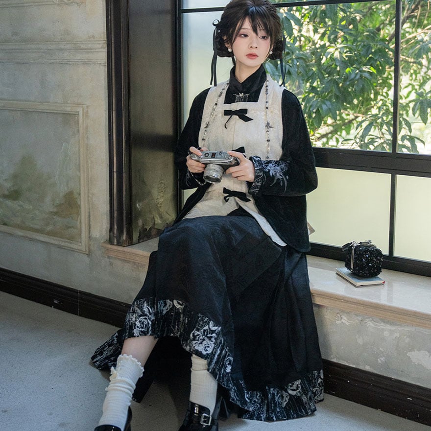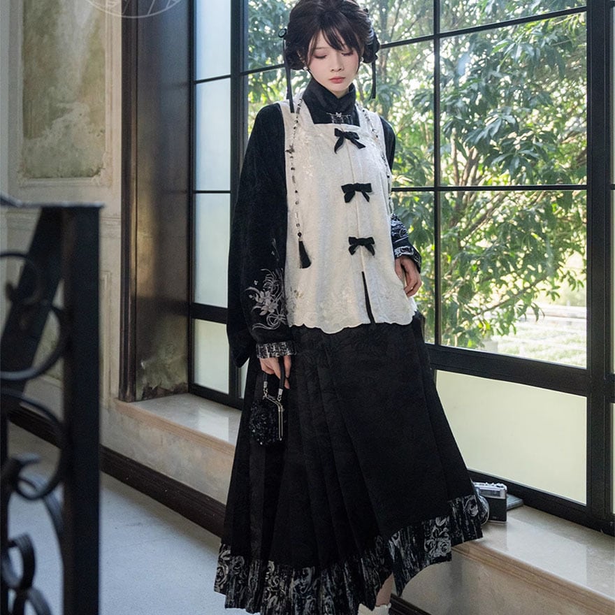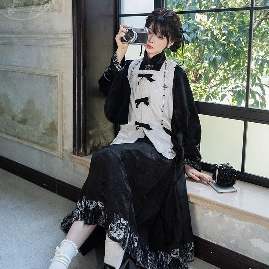 SEASONZ 華ロリ 中華ロリータ チャイナ風 スカート プリーツスカート ロング丈 レトロ 透かし柄 漢服 控えめ 20代 30代