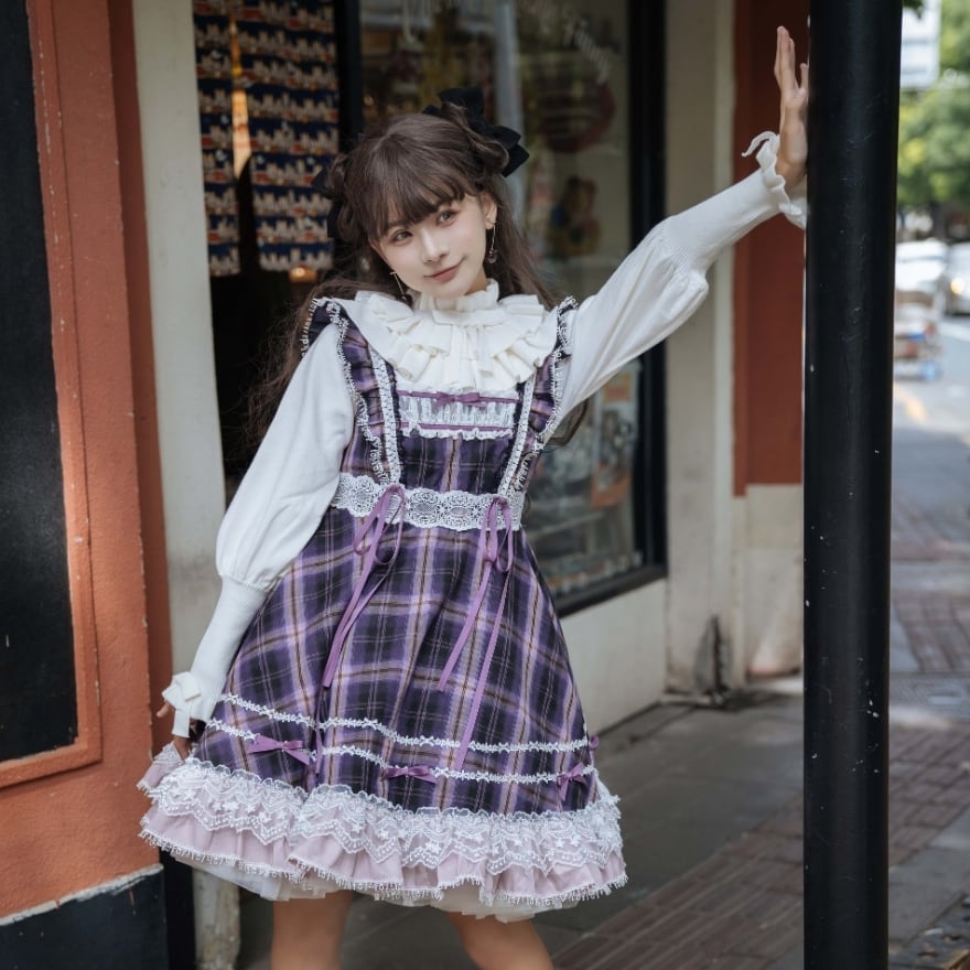 SEASONZ 甘ロリ エンドレスサマー ジャンパースカート チェック柄 ハイウエスト 双子コーデ お茶会 撮影会衣装