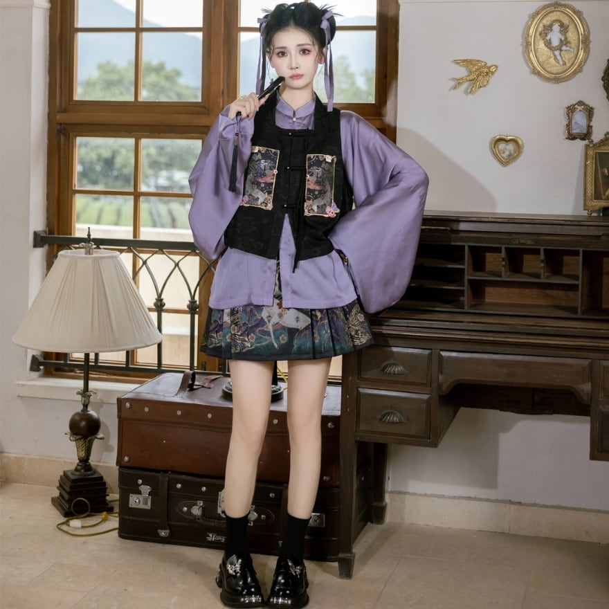 関連キーワード: #ロリィタ #チャイナ風 #セットアップ #中華風 #オリエンタル #パープル #刺繍 #チャイナボタン