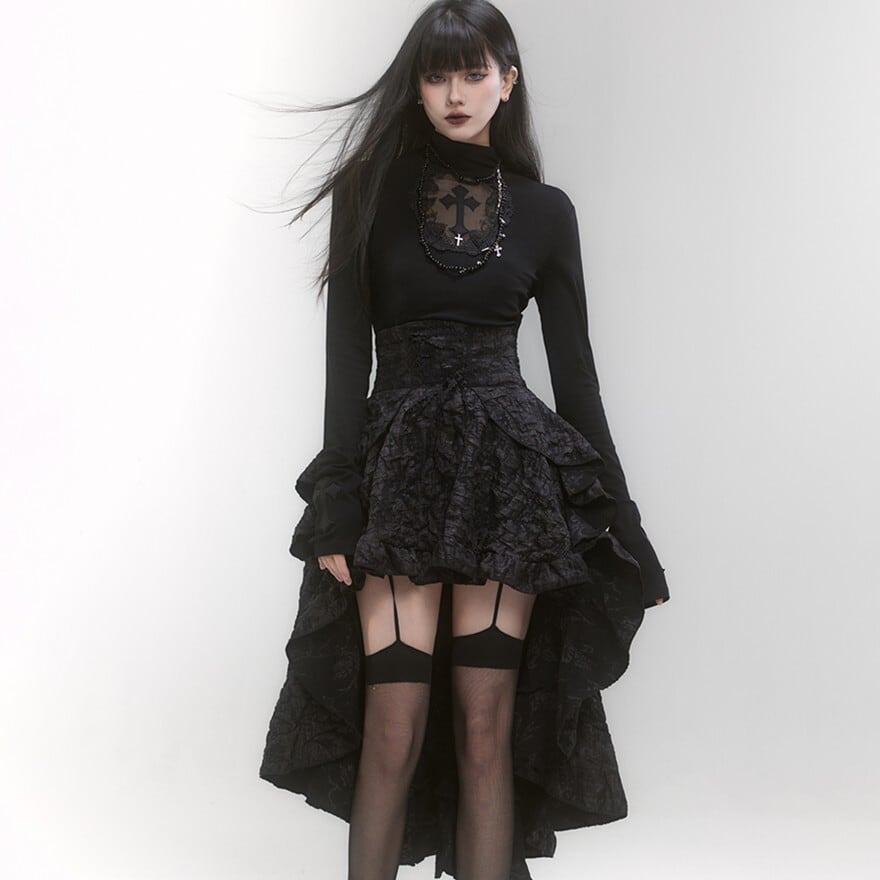 関連キーワード: #ゴスロリ #ゴシック #ブラックスカート #フリル #ジャガード織 #アシンメトリー