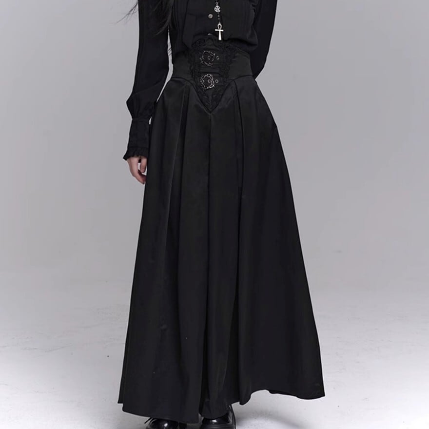 コルセット風デザインが特徴的な、ゴシックロングスカートです。