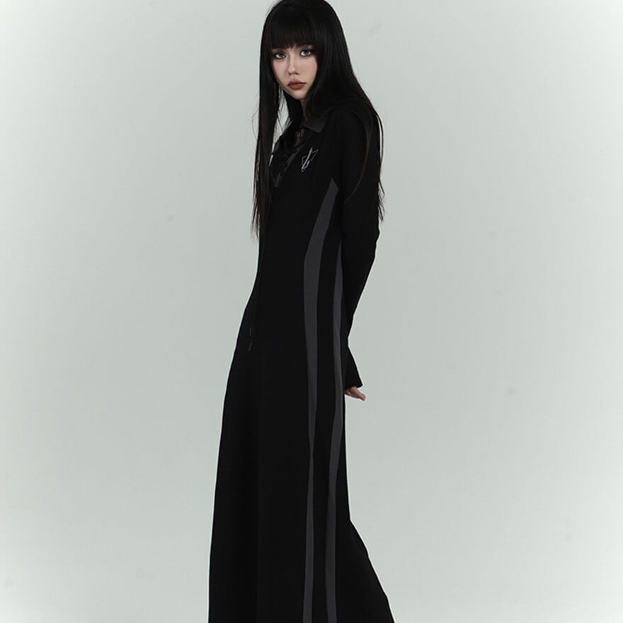 #ゴスロリ #ゴシック #ブラックワンピース #アシンメトリー #レースアップ #ロングワンピース