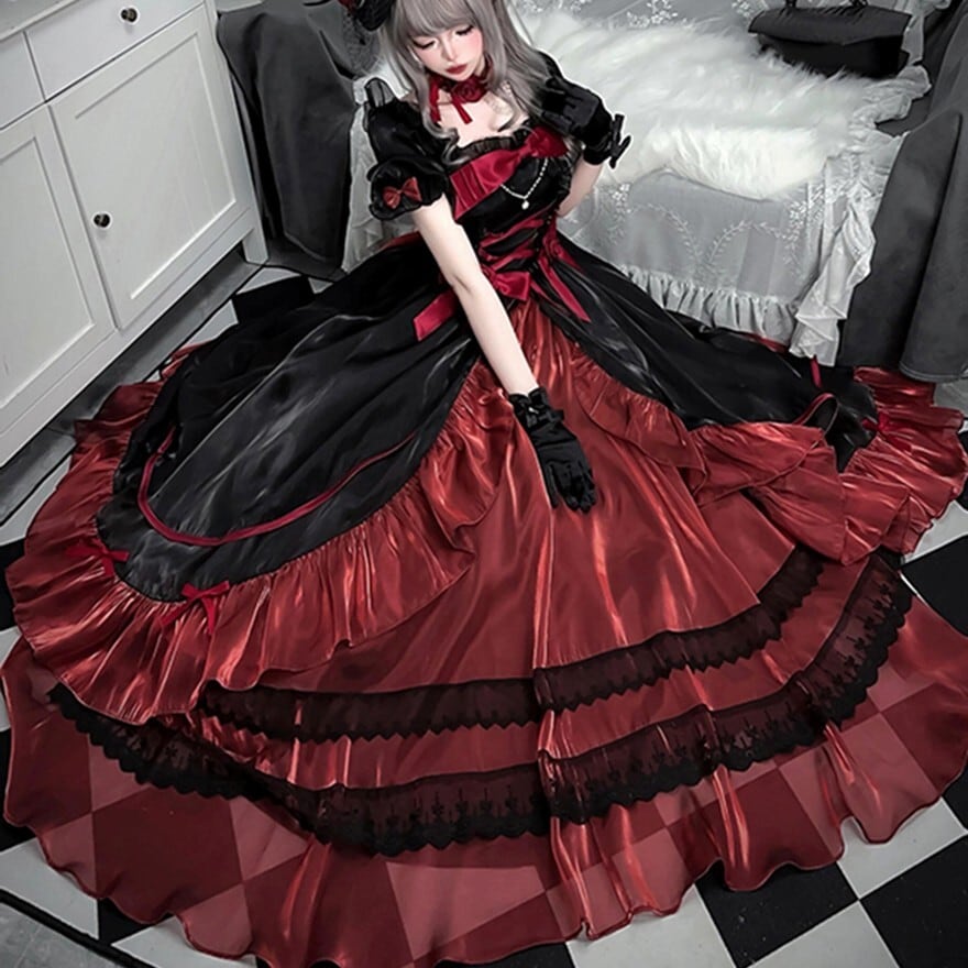 深みのある赤と黒のコントラスト、繊細なレース、そしてふんわりと広がるシルエットが、見る者を幻想的な世界へと誘います。