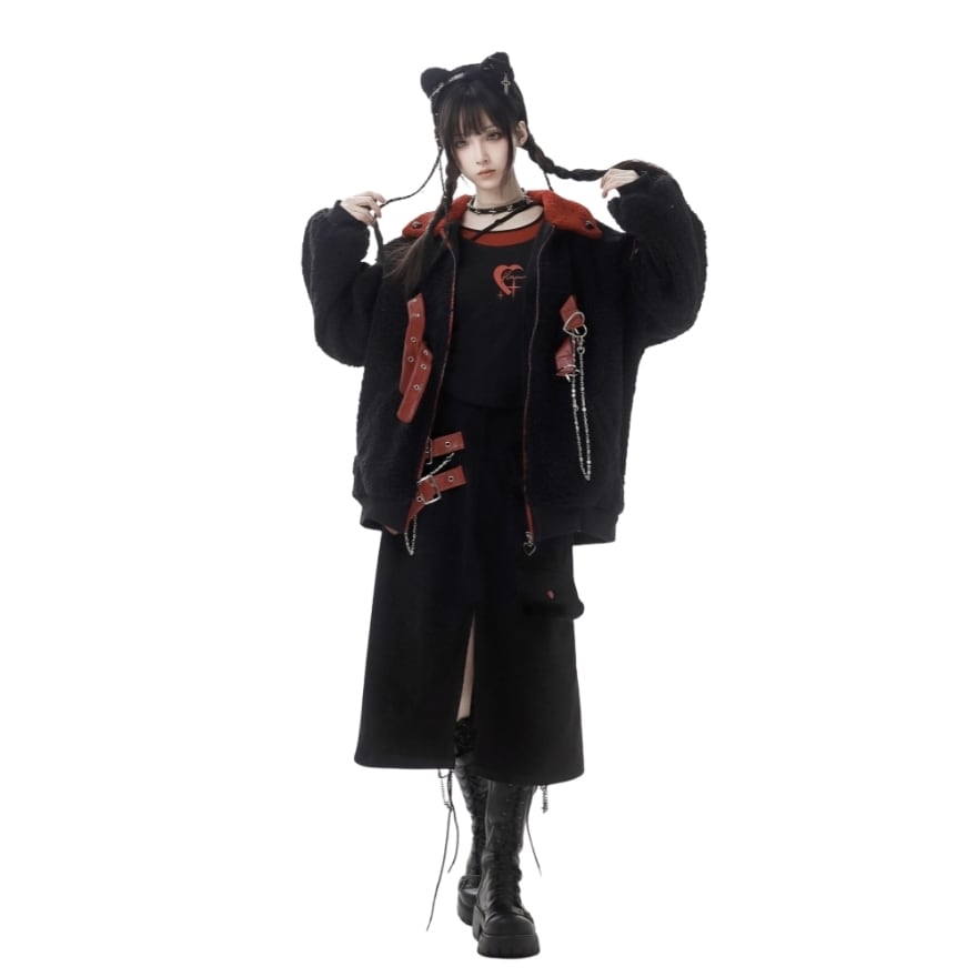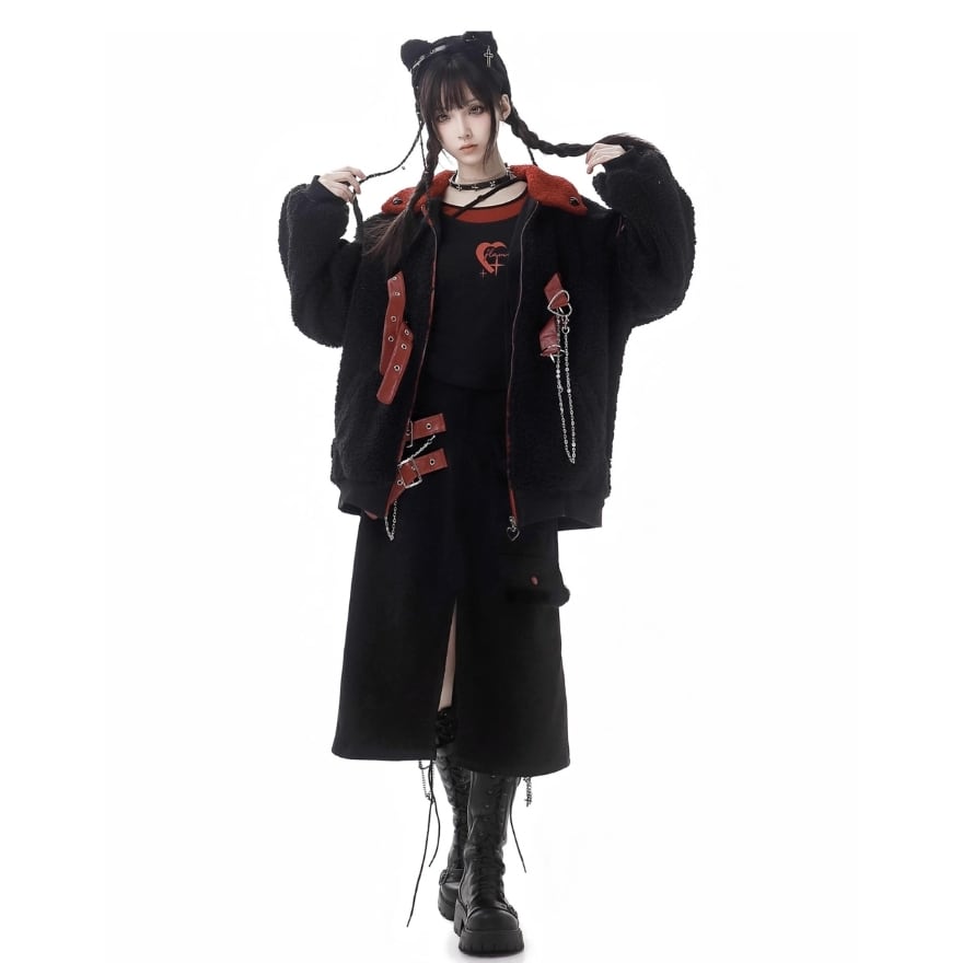 SEASONZ パンクファッション pinksavior ジャケット ZIPアップ ハートリング ストラップ 地雷系ファッション