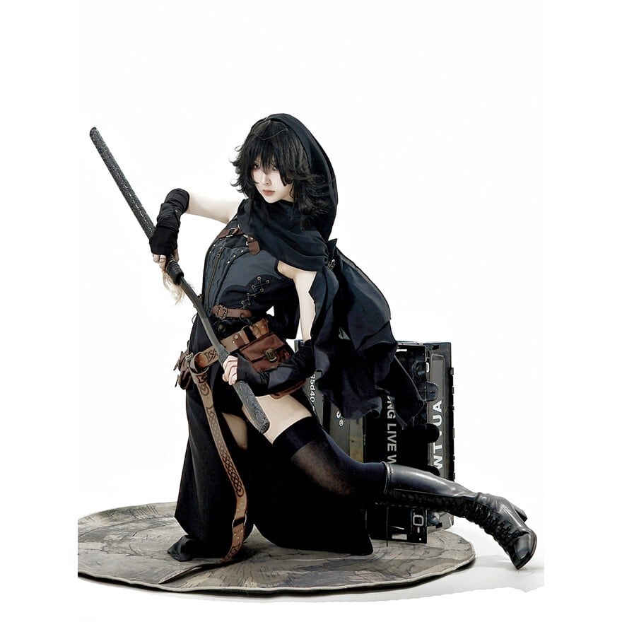 ハードな装飾、アシンメトリーなシルエット、そして武器を彷彿とさせる小物が、クールで個性的なスタイルを演出します。
