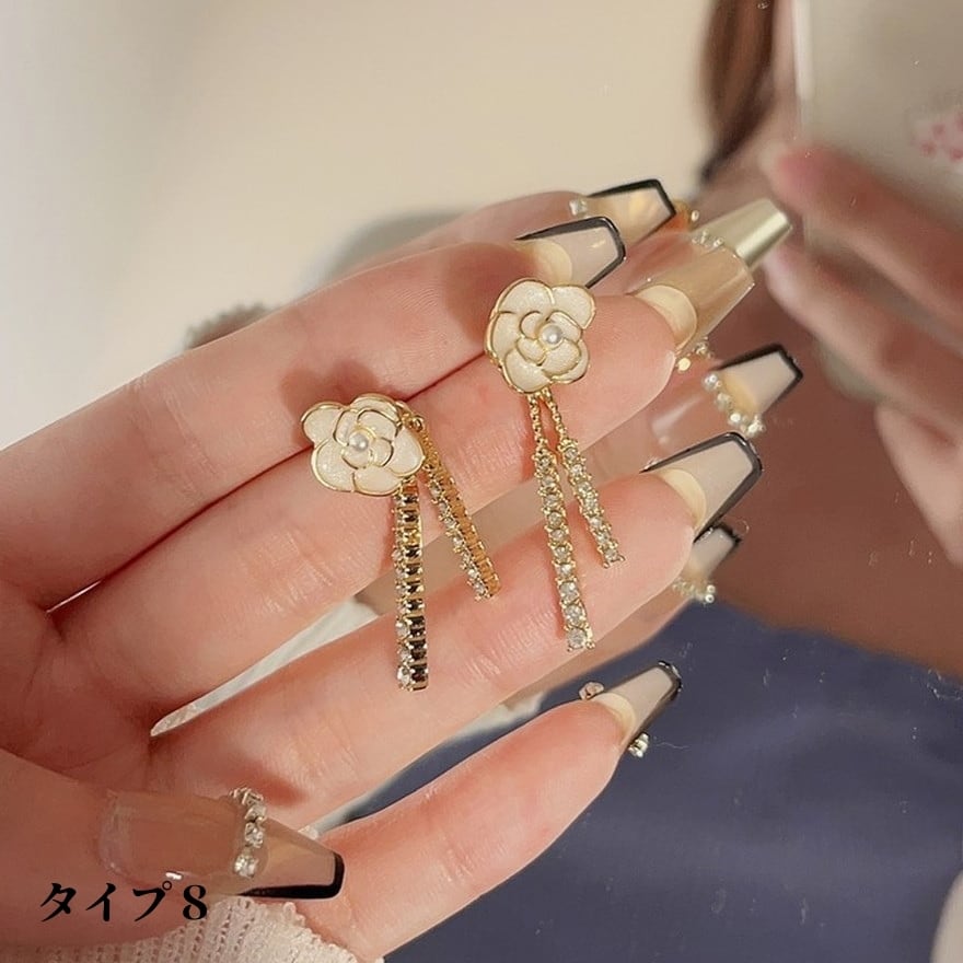 SEASONZ イヤリング タッセルイヤリング カメリア フラワー アクセサリー パーティ 女子会 デート