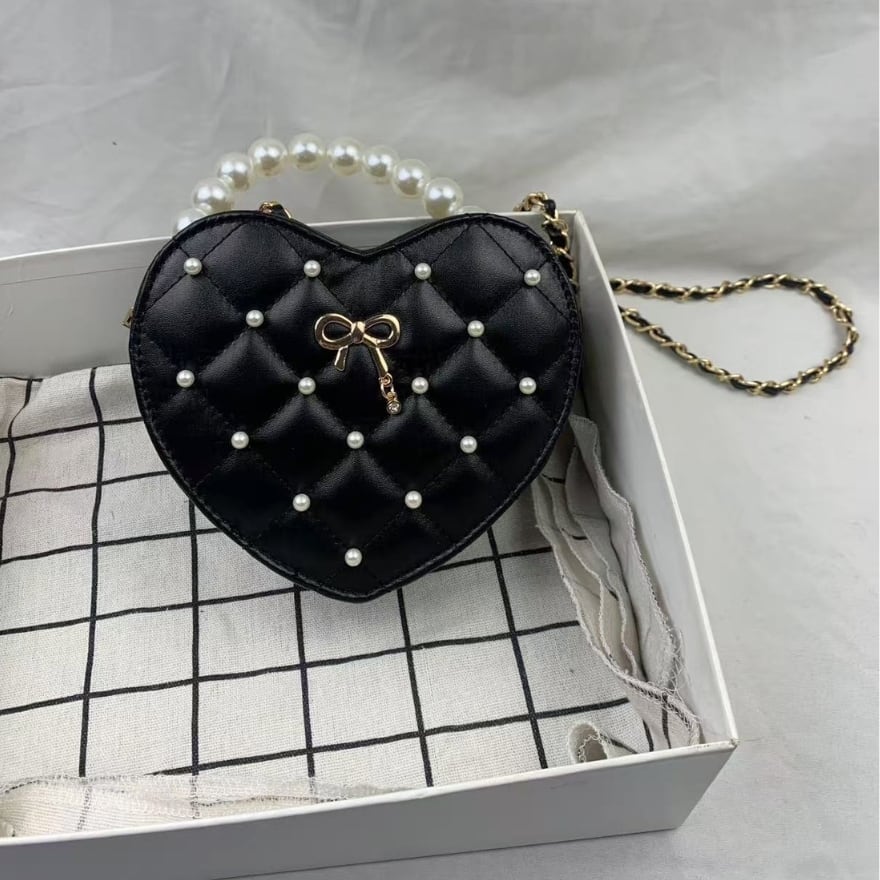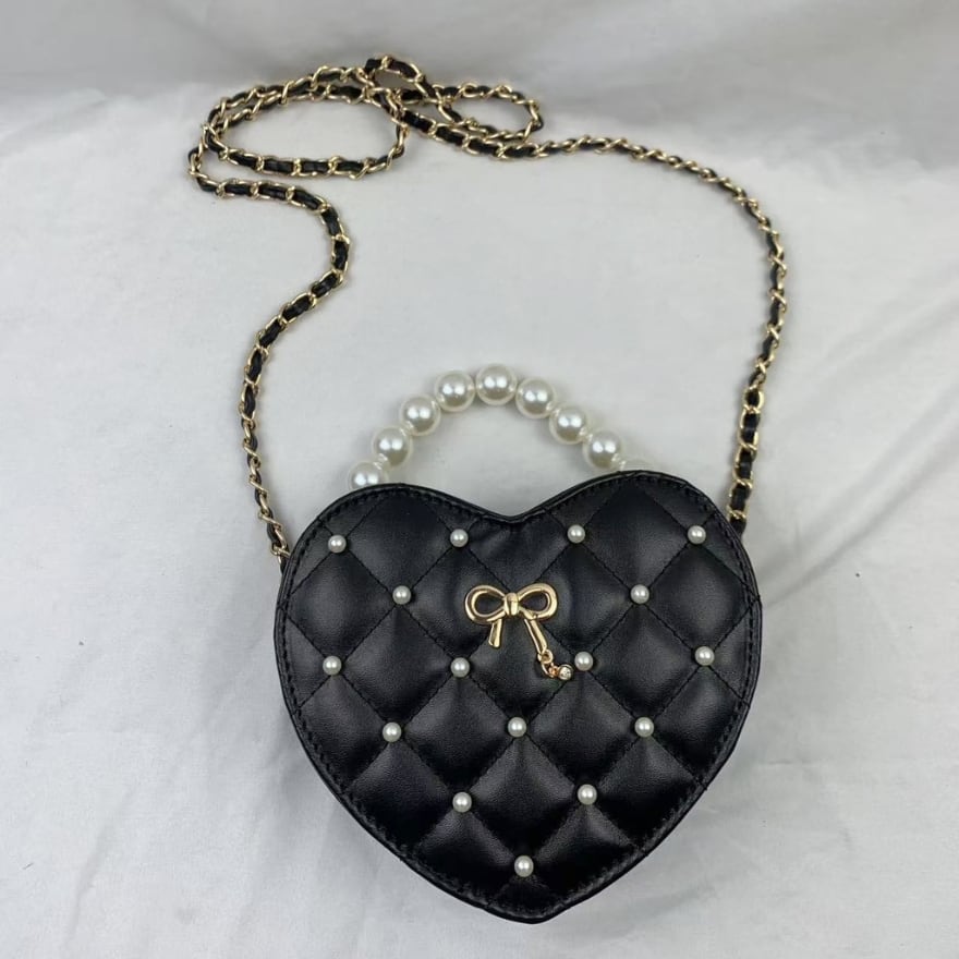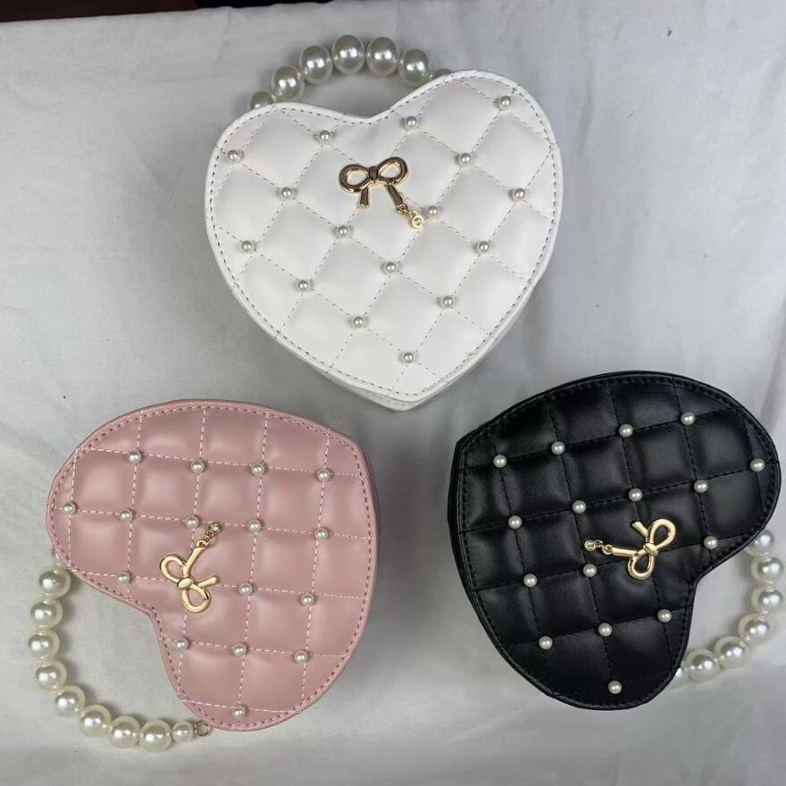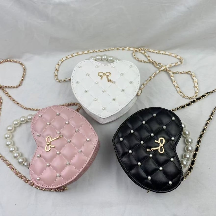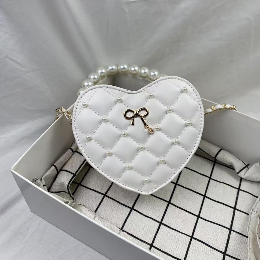 SEASONZ バッグ ハンドバッグ ロリィタコーデ ハート型 パールチェーン キルティングデザイン リボン