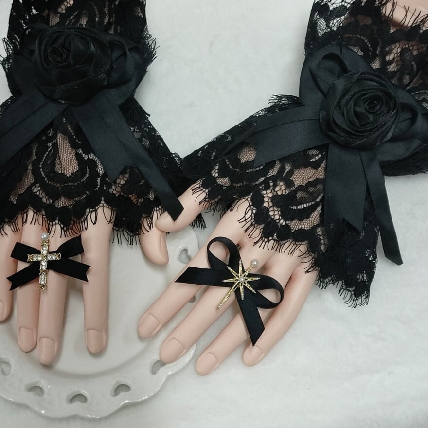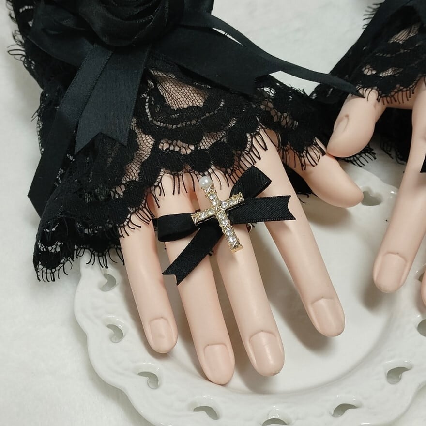 繊細なレース、指元のリボンアクセサリーがダークゴシックな雰囲気を格上げしてくれます