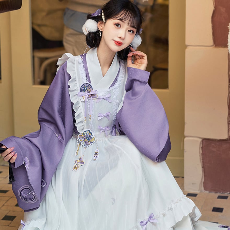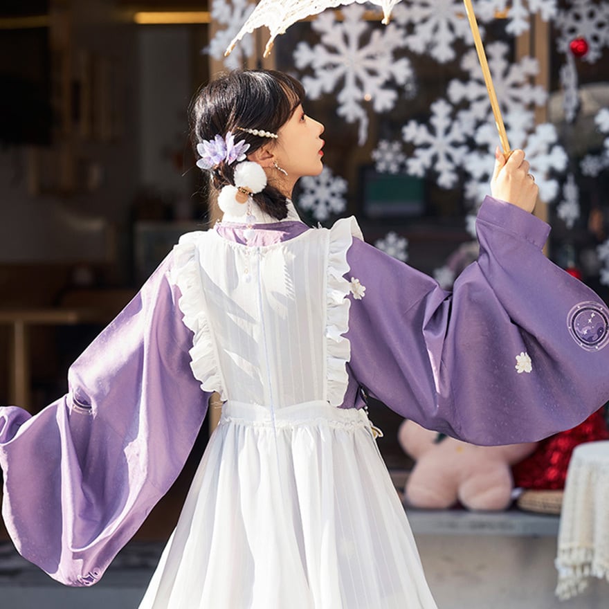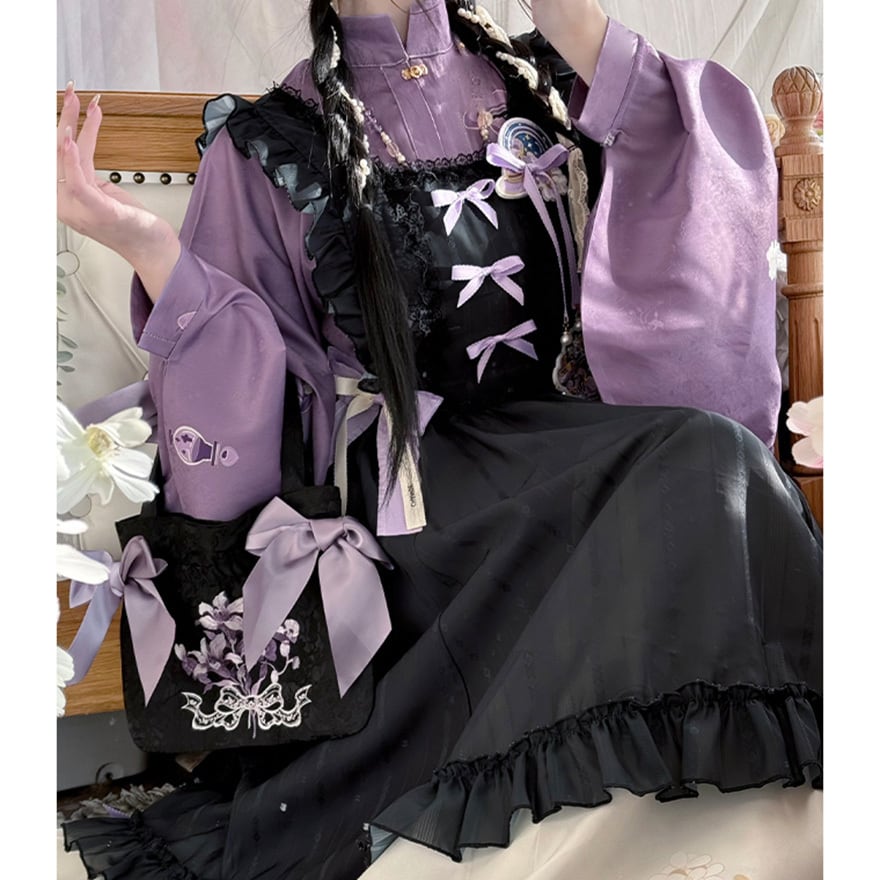 中華ロリータ エプロン ロング丈 民族調 着物風 中華メイド服 イベント衣装 撮影会衣装