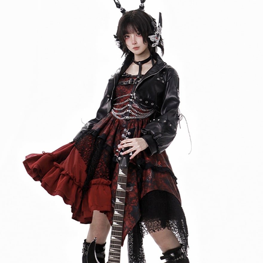 関連キーワード: #パンク #ジャケット #レザー調 #チェーン #レッグスリーブ #ストリートファッション #イベントコーデ