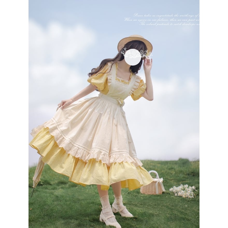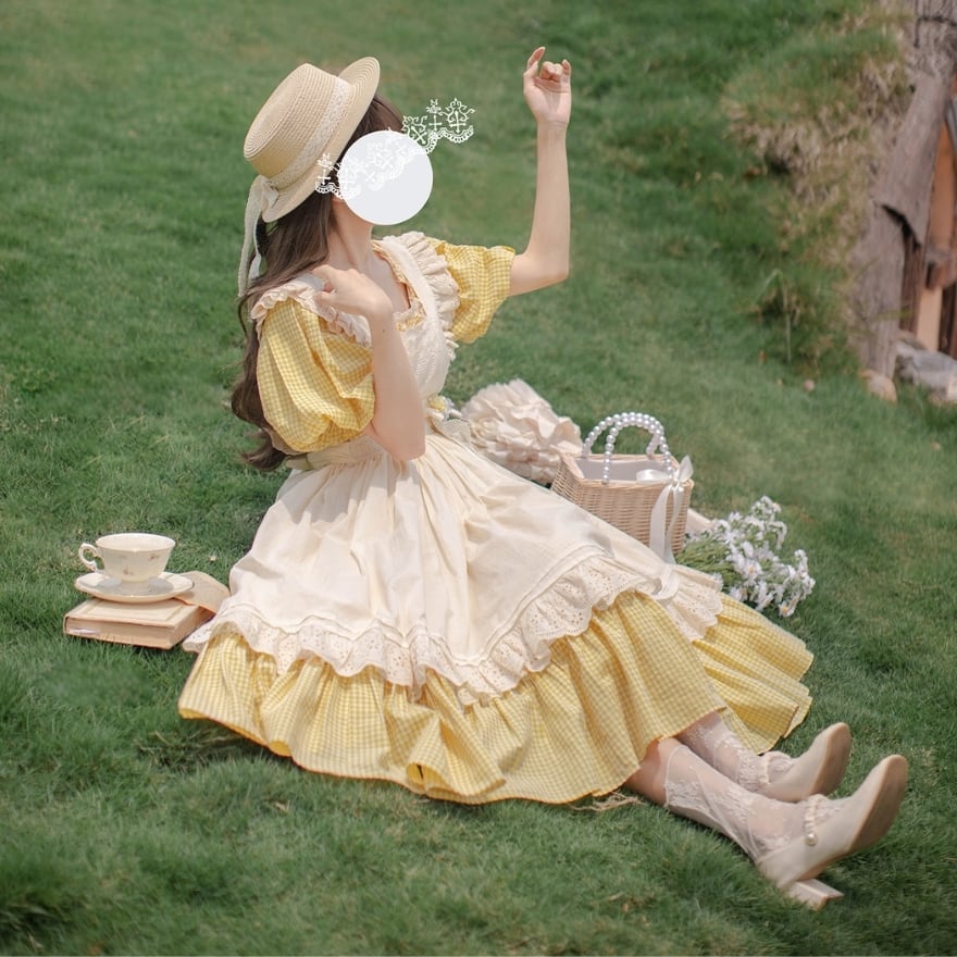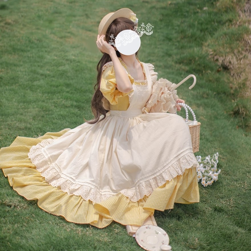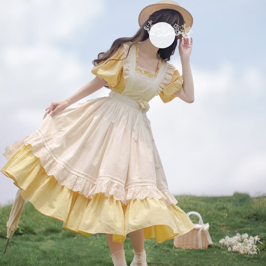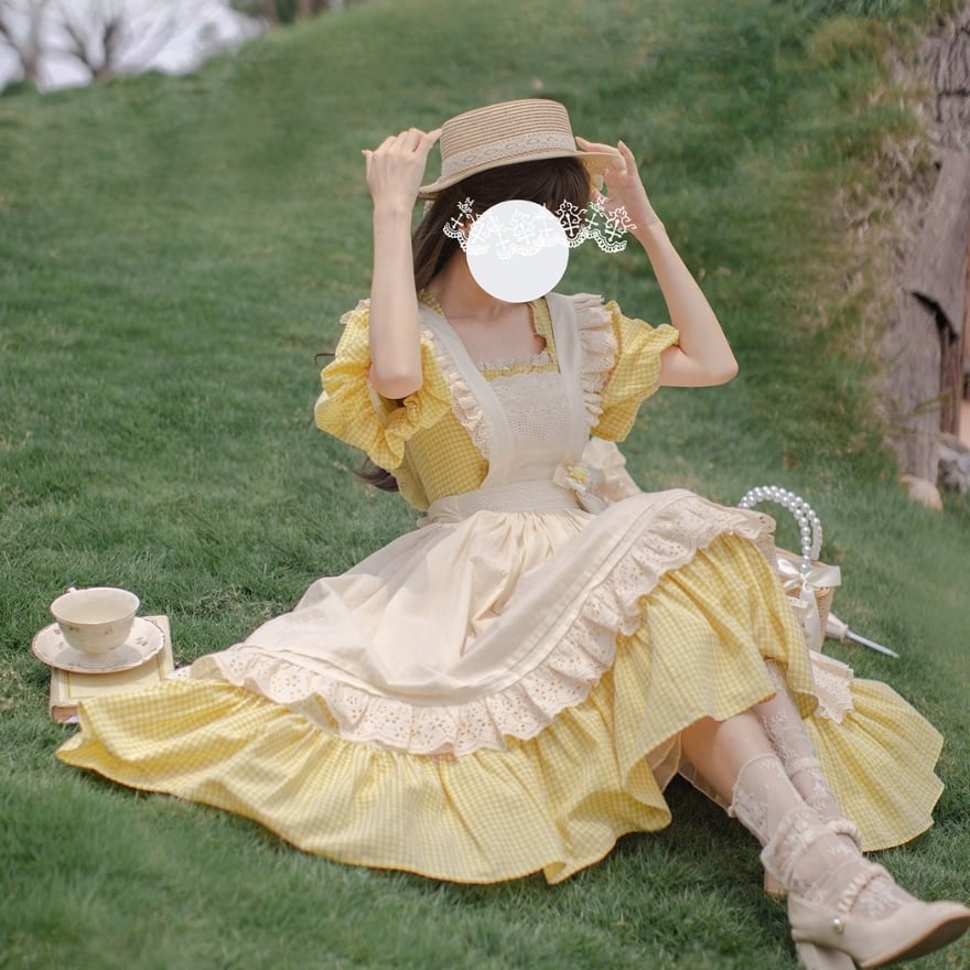 関連キーワード: #クラロリ #ロリィタ #フレンチガーリー #ワンピース #チェック柄 #イエロー #フリル #レース #パフスリーブ #カントリー #田園風