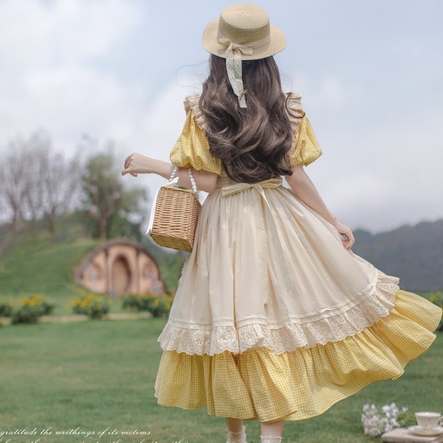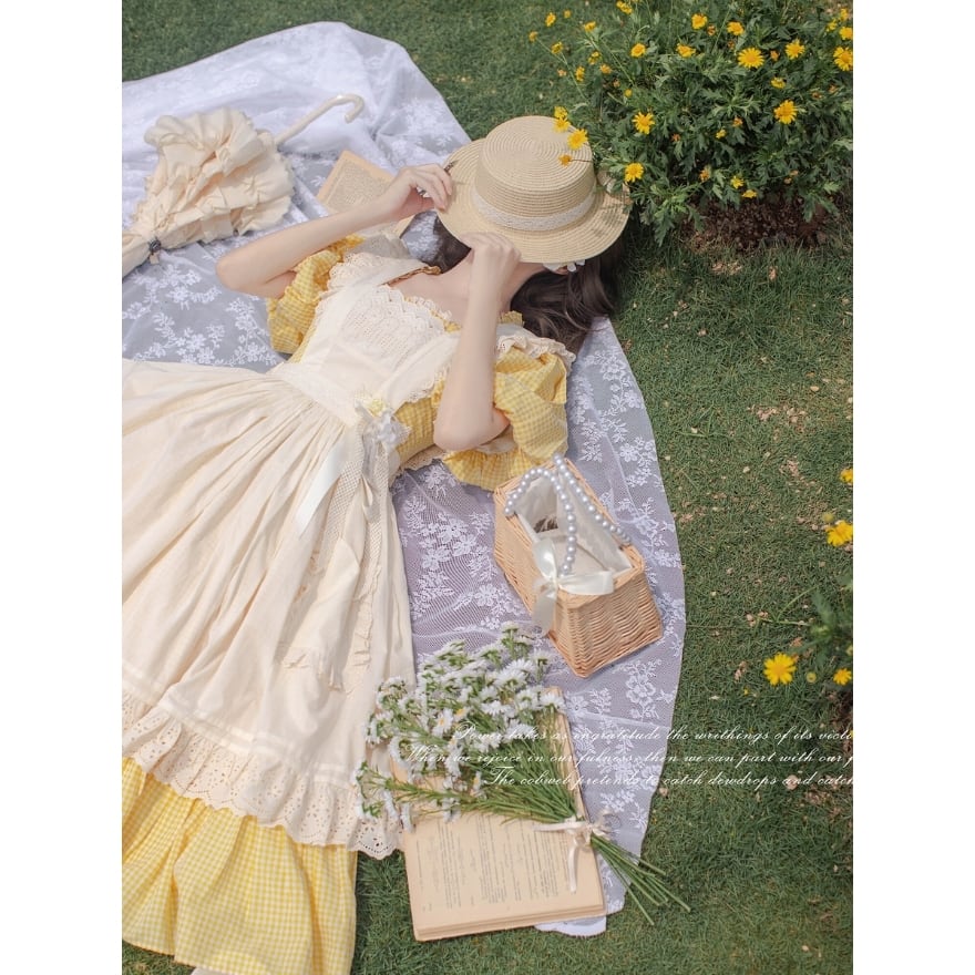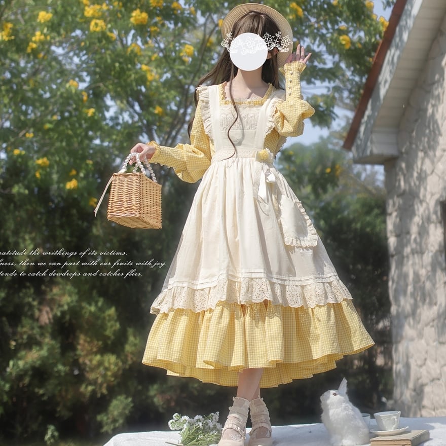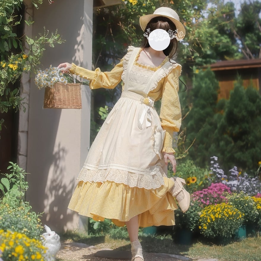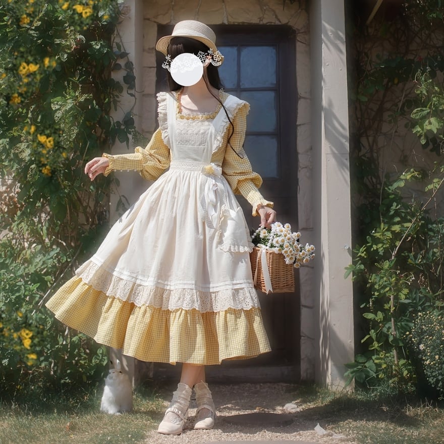 関連キーワード: #クラロリ #ロリィタ #フレンチガーリー #ワンピース #チェック柄 #イエロー #フリル #レース #パフスリーブ #カントリー #田園風