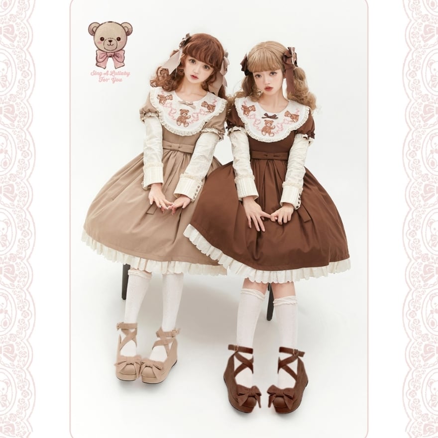 関連キーワード: #甘ロリ #夢かわいい #ロリィタ #ワンピース #クマ柄 #刺繍 #フリル #リボン #レース #クラシカル #ドーリー #ブラウン #双子コーデ