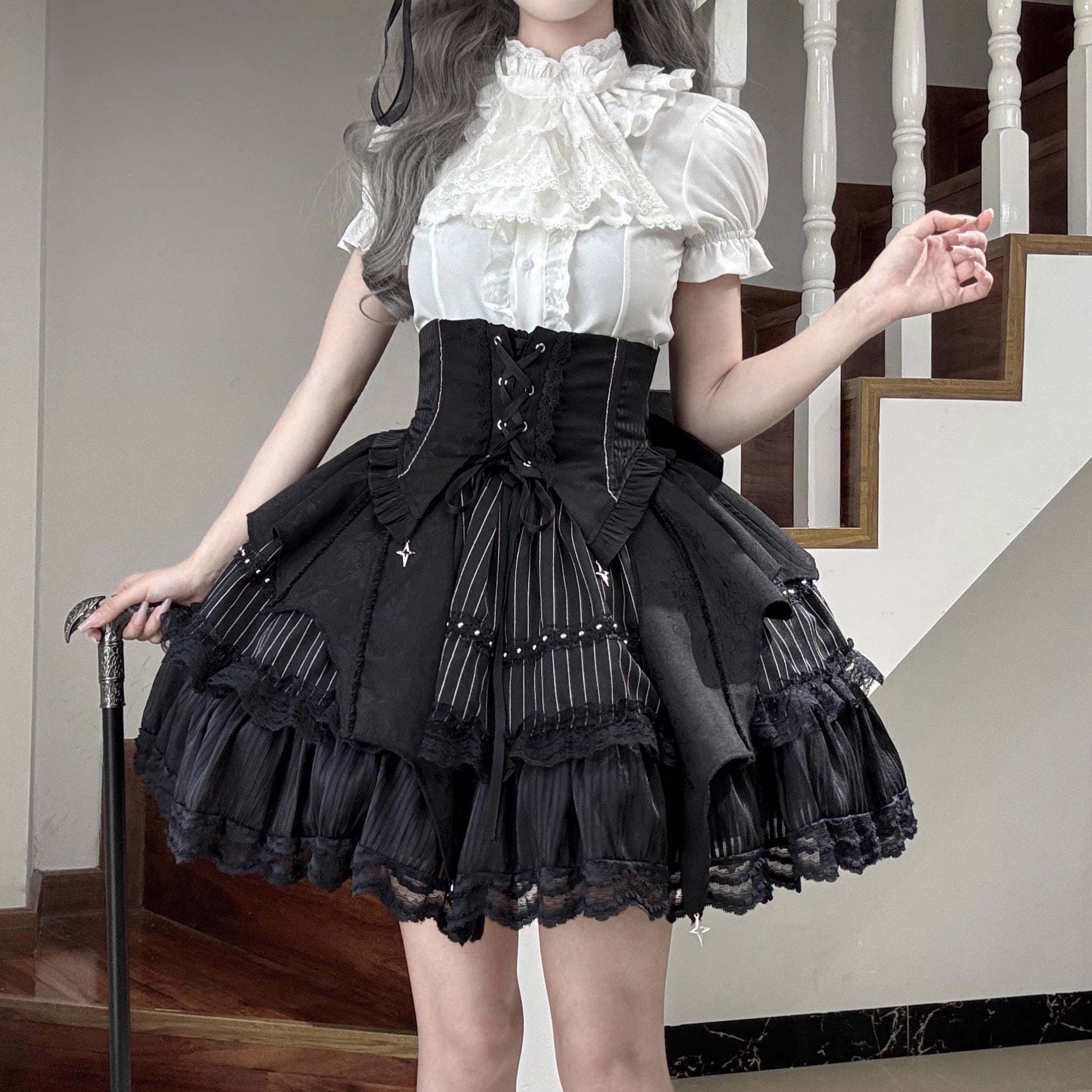 圧倒的な存在感を放つ、ゴスロリ ブラウス&ビスチェ&スカートのセットアップ