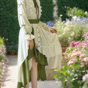 優雅なドレープとアシンメトリーな裾のラインが、ひときわ目を引くロング丈スカートです。異なる素材を重ねたデザインは、動きに合わせて豊かな表情を生み出し、周囲の視線を惹きつけます。ブラウスやニットと合わせて、あなたらしいロリィタスタイルを楽しんでください。