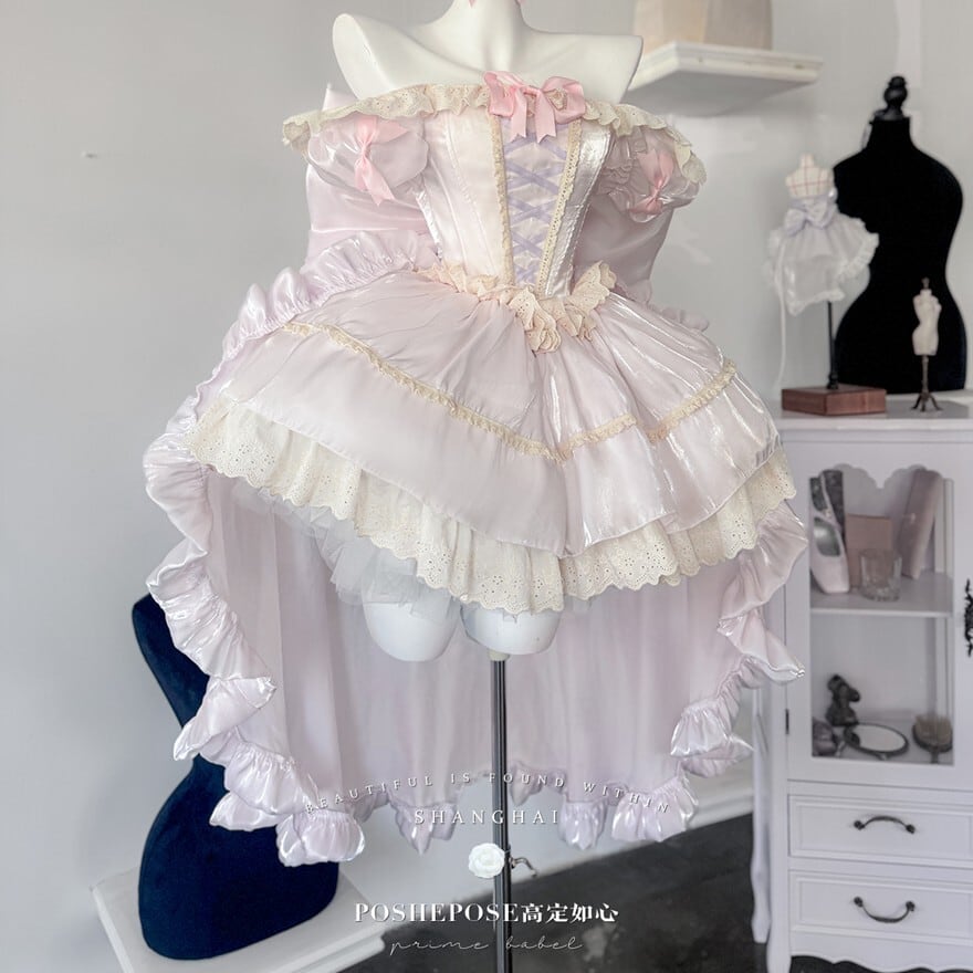 ロリィタドレス プリンセスドレス パープル オフショルダー コンカフェ ロングテール パーティ衣装 イベント