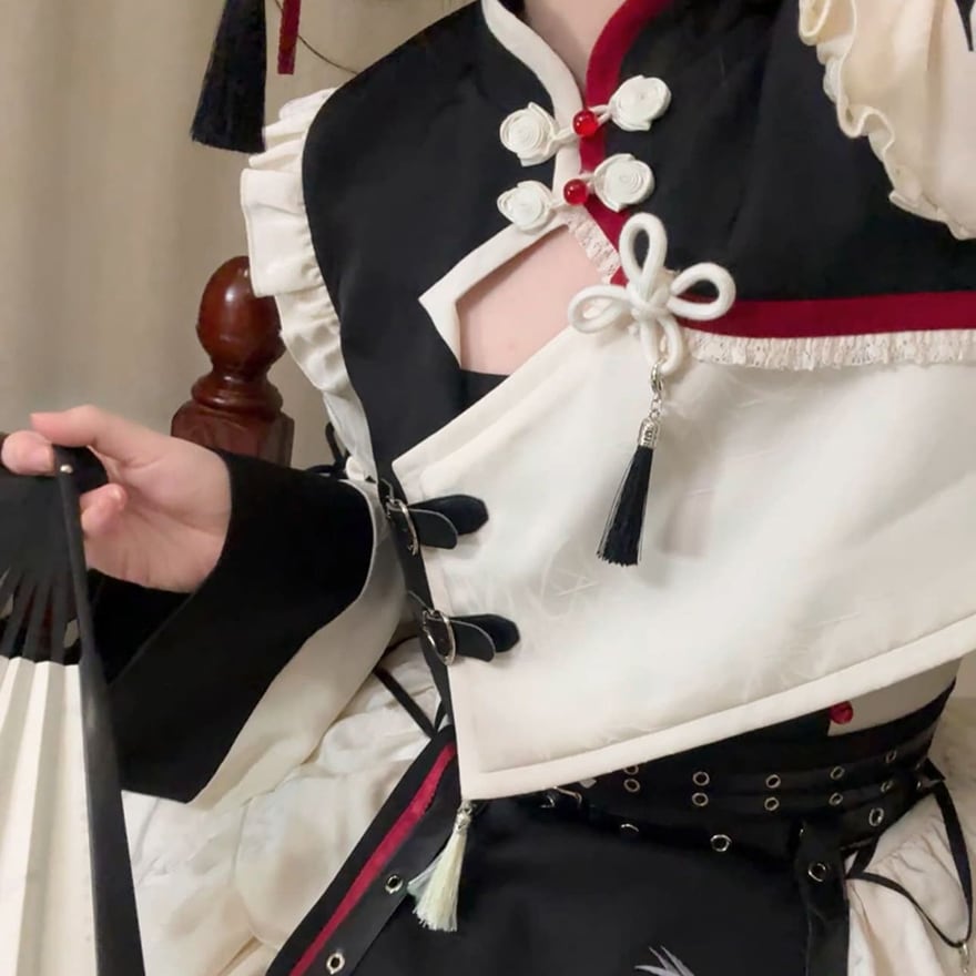 国内到着 チャイナ風 中華ロリータ スタンドネック ジャケット ジャンパースカート ヘッドドレス タッセル 刺繍 イベント衣装 ステージ衣装 撮影会衣装