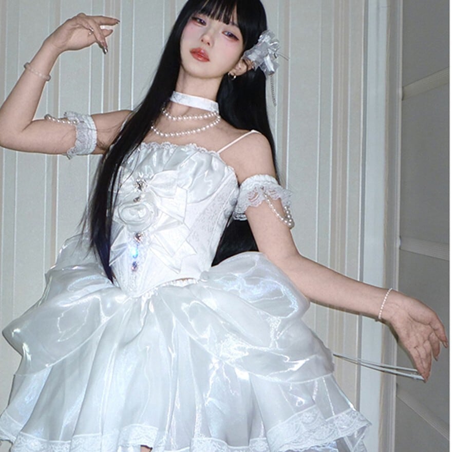 ロリィタドレス ホワイト プリンセスドレス パーティドレス コンカフェ パーティ衣装 イベント