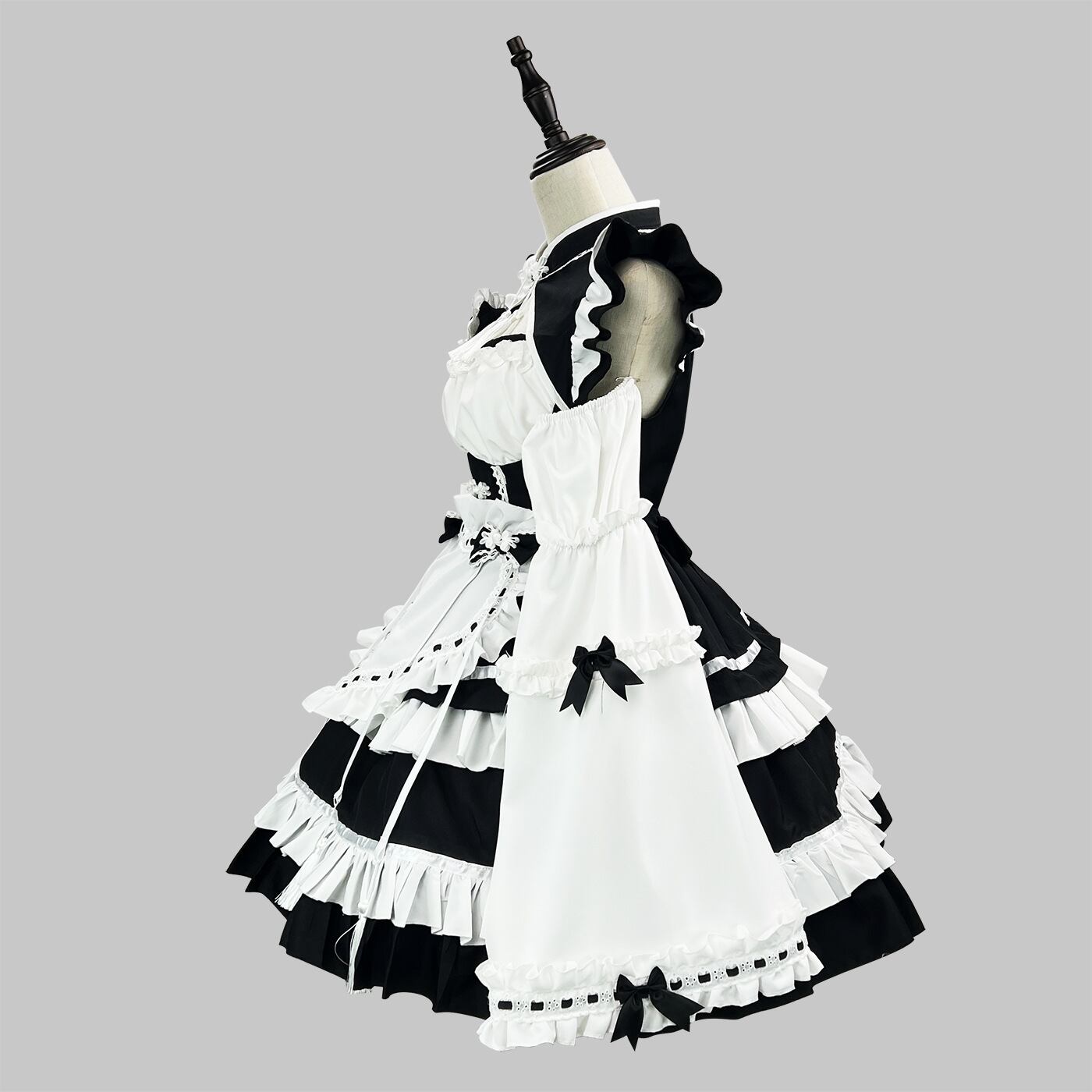 ワンピース、 胸飾り、 蝶結び、エプロン、タッセル、 ヘッドドレス、付け袖付き