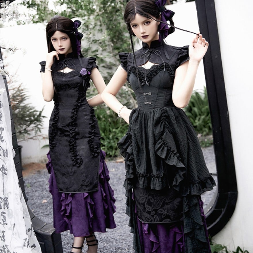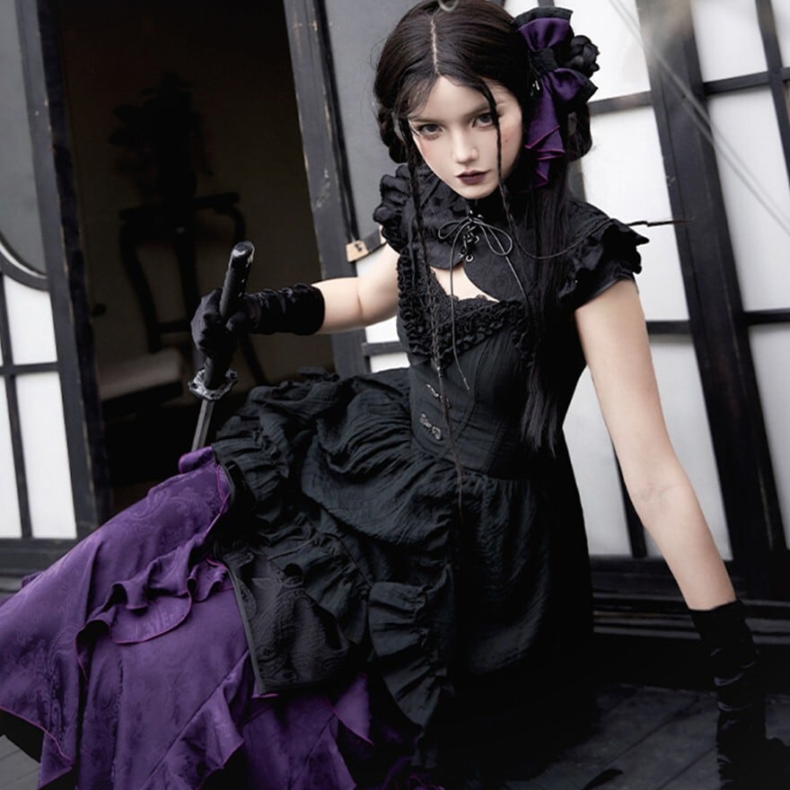 ・ゴシックロリィタのイベントや、少しダークな雰囲気のパーティーにぴったり。ブラウスやカットソーとの組み合わせ次第で、普段使いにも取り入れられます。お手持ちのアクセサリーやヘッドドレスと合わせて、自分だけの個性的なスタイリングを楽しんでください。