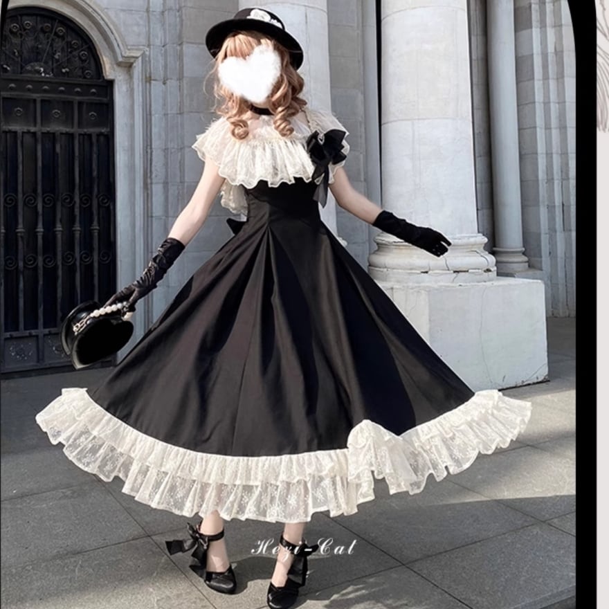 モノトーンにレースの甘さを添えて。シックでエレガントなクラシカルロリータ ワンピース