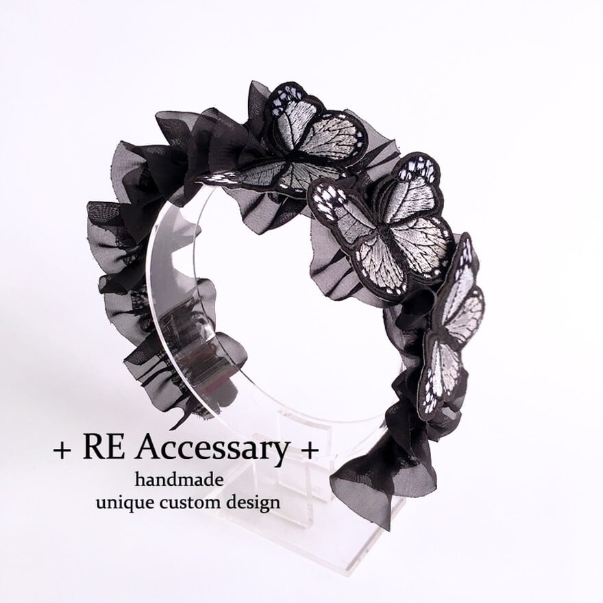 関連キーワード: #カチューシャ #ヘアアクセサリー #蝶 #バタフライ #刺繍 #レース #ゴシック #ロリータ #クラシカル #エレガント #シック #個性的 #ヘッドドレス #髪飾り