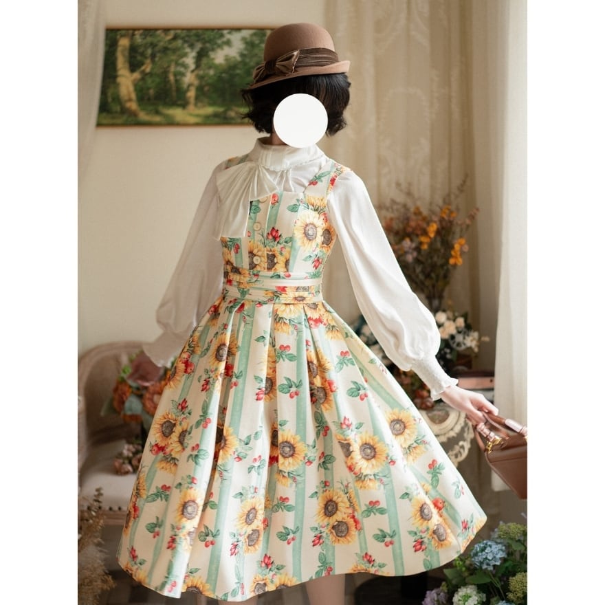 花柄が華やかさを添える、普段使いにもおすすめなクラシカルロリータ ジャンパースカート