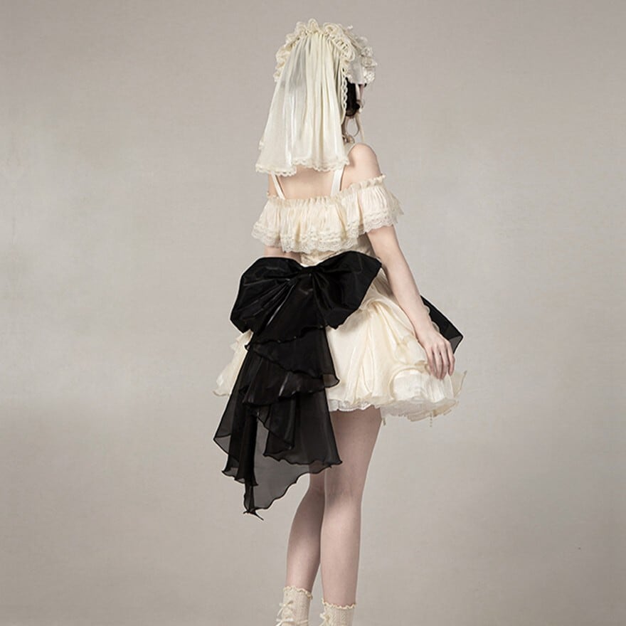 ロリィタフルセット(ショートJSK、ヘアピン、カメリアパールネックレス、ショール、2wayヘアバンドベール)