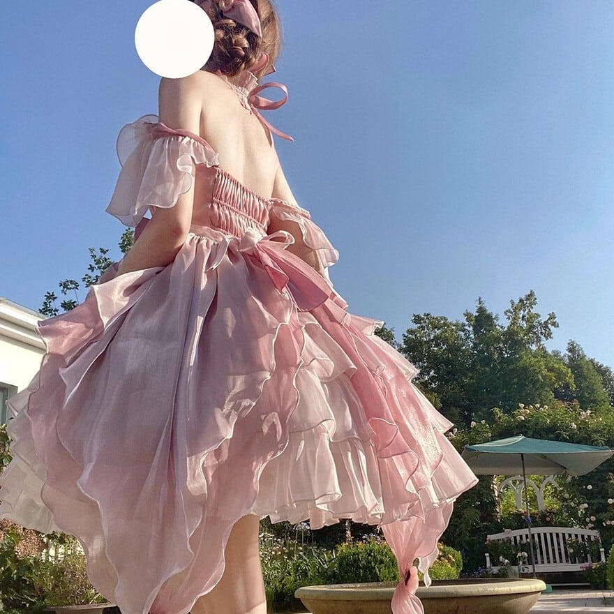 SEASONZ 甘ロリ ふわふわ ジャンパースカート プリンセスドレス ピンク ふわふわアイドル風