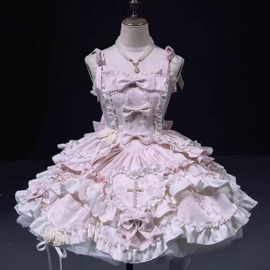 幾重にも重なるフリルやリボン、そしてハート型の装飾が、とことん甘く愛らしい世界観を表現しています。