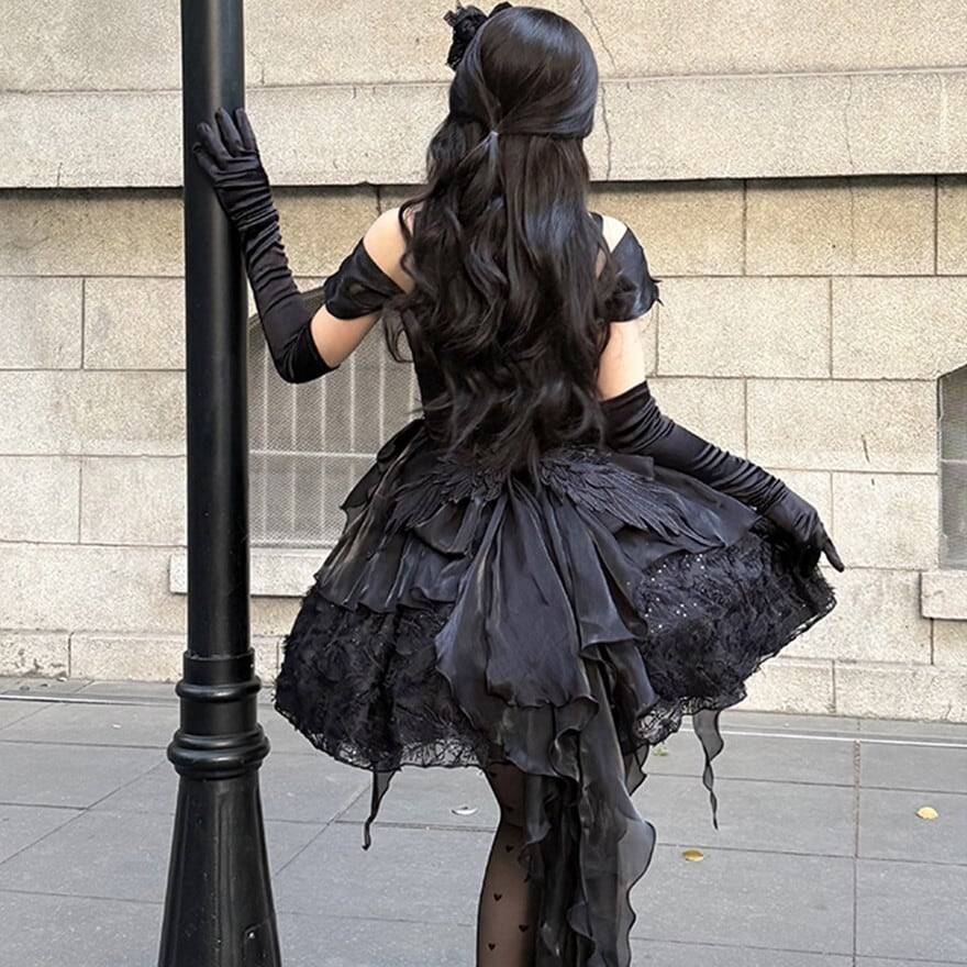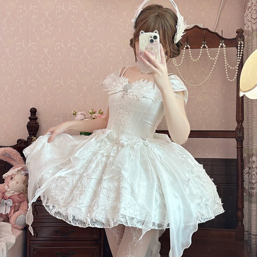 受注予約商品 SEASONZ ゴスロリ スワン ジャンパースカート ダークゴシック レース ステージ衣装 バレエ コンカフェ衣装
