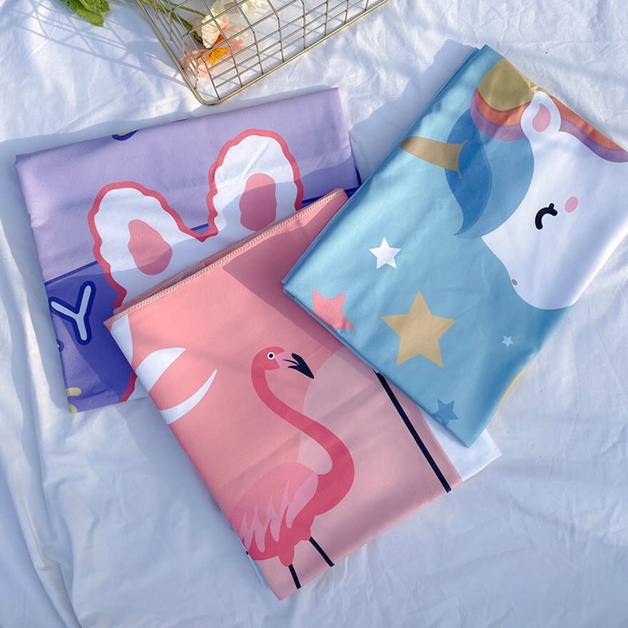 海水浴、プールなどで活躍してくれる可愛らしいキャラクターデザインの速乾性タオル(70×150cm)です。