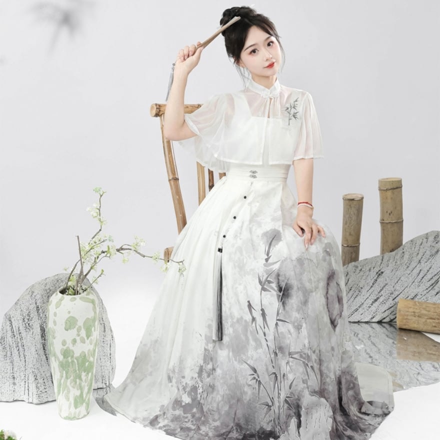 関連キーワード: #チャイナ風 #セットアップ #ケープ #ジャンパースカート #墨絵風 #東洋風 #夏服 #涼しい #上品 #女性らしい