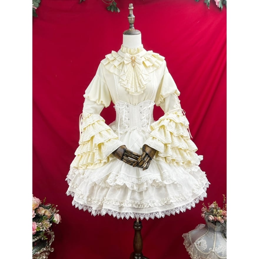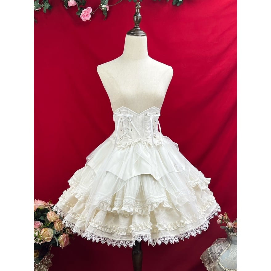 写真のスカートをハイウエストに演出してくれるゴスロリコルセットです。