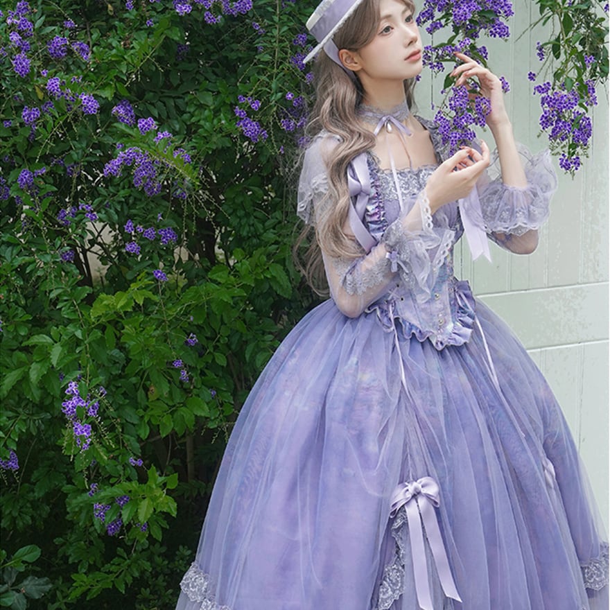 すみれ色を基調とした、華やかでエレガントなロリータ6点フルセットです。セット内容は以下の通りです。
