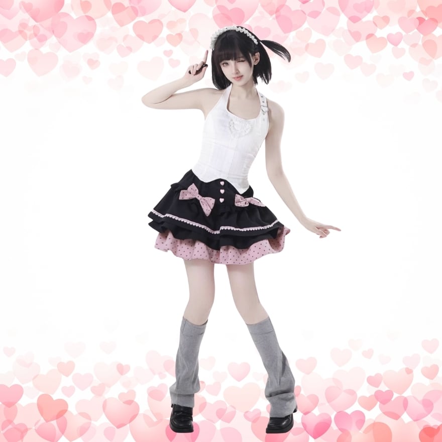 関連キーワード: #ロリィタ #ロリータファッション #甘ロリ #可愛い #ピンク #黒 #レースアップ #リボン #フリル #ドット柄 #フェミニン #デート #お出かけ #セットアップ