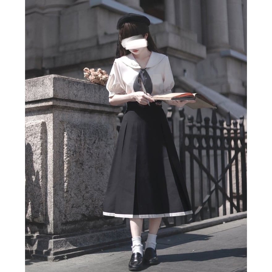 どこか懐かしく、それでいて新しい。ふんわり広がるパフスリーブと愛らしいセーラー襟が織りなす、夢見るようなクラロリ3点セットアップです。普段使いしやすい控えめなデザインの中に、ロリィタの甘さと「胡桃木」ならではの上品さが光る一着です。