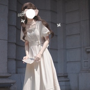クラロリ ワンピース パフスリーブ ウエストベルト お嬢様風 控えめロリィタ 普段着使い 胡桃木 可愛いファッション
