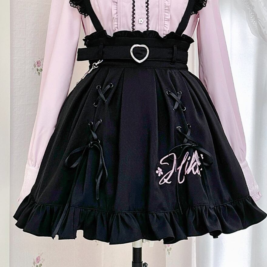 このスカートの最大の魅力は、ロリィタの甘いフリルやリボンと、地雷系のクールなチェーンや編み上げが完璧に融合している点です。 着るだけで、ドールのような可愛らしさと、エッジの効いた強い個性を同時に表現できます。