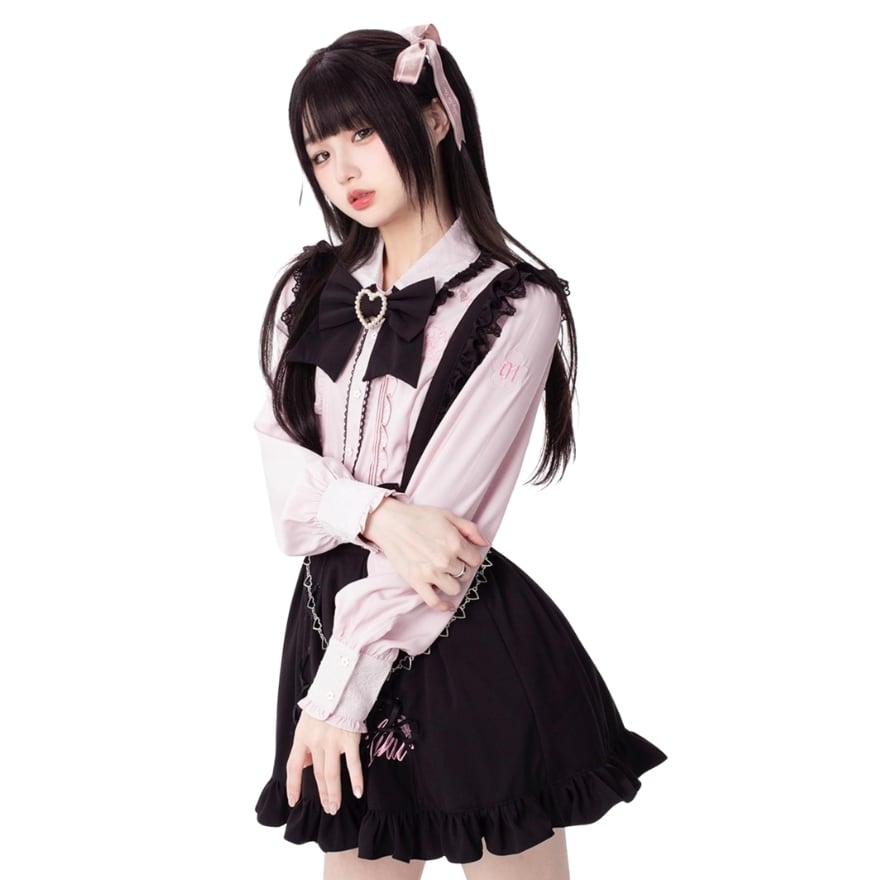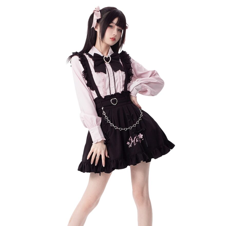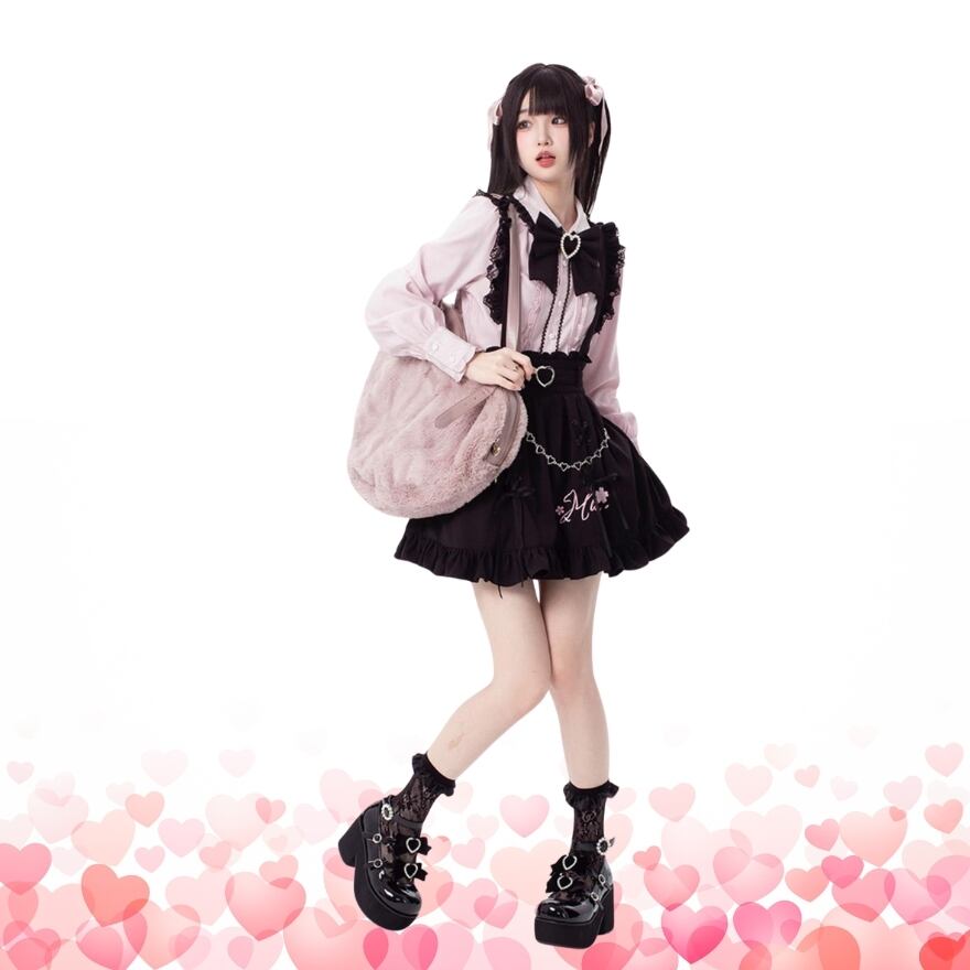先ほど提案したピンクのブラウスとの相性はもちろん抜群で、統一感のある地雷系ロリィタコーデが完成します。 また、Tシャツやパーカーと合わせてカジュアルダウンしたり、ゴシック系のブラウスと合わせてよりダークな雰囲気にしたりと、様々な着こなしが楽しめます。