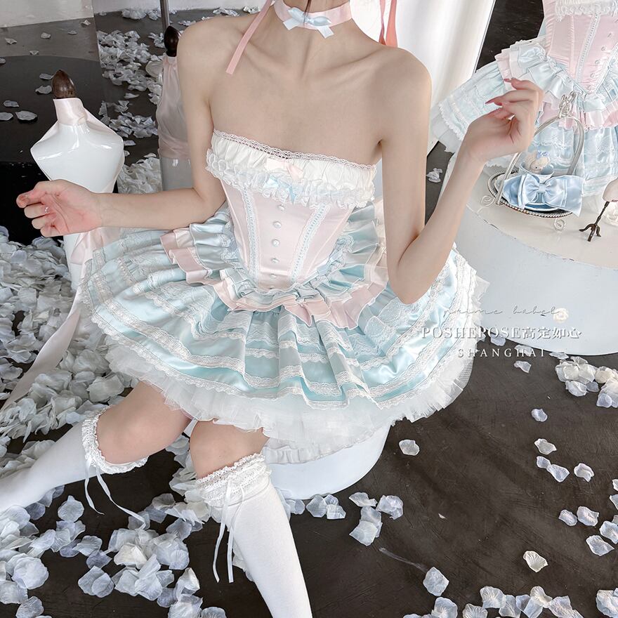 関連キーワード: #ロリータ #スイートロリータ #ドレス #ミントブルー #ピンク #レース #可愛い #ドーリー