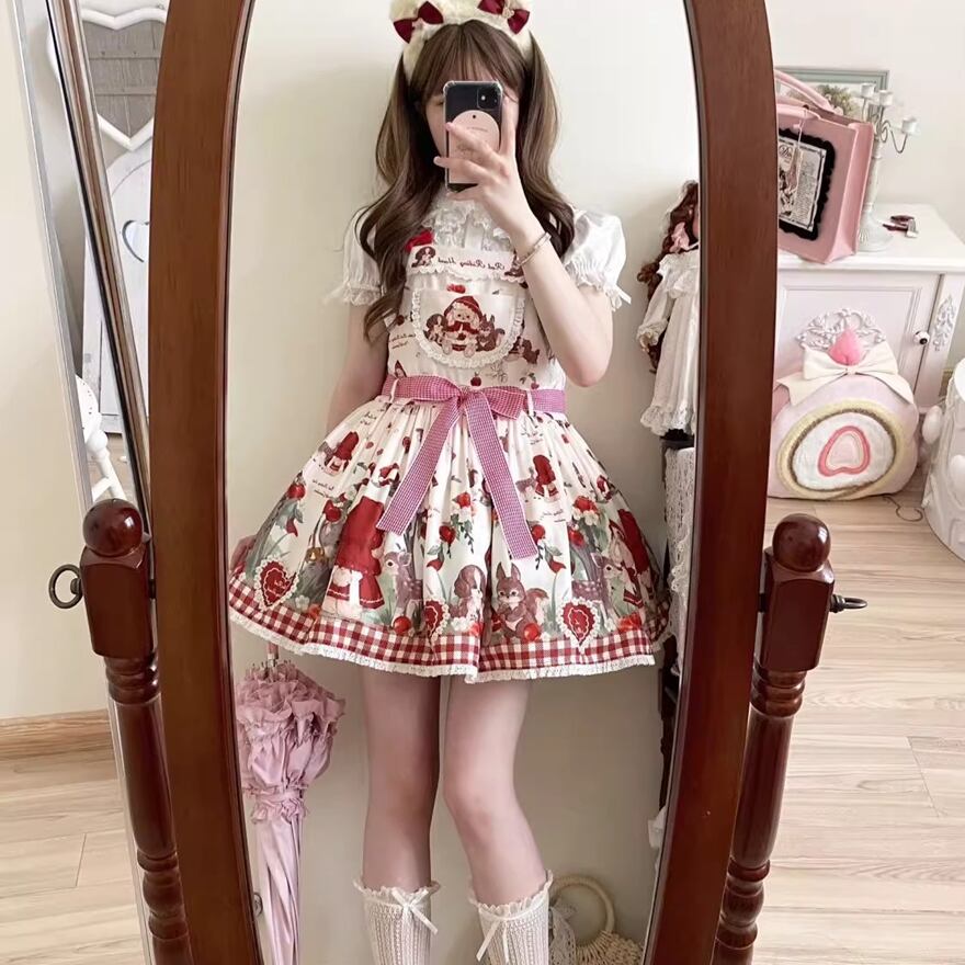 SEASONZ 夢かわいい セットアップ ブラウス ジャンパースカート プリント柄 赤ずきん レッド 初心者 おすすめ