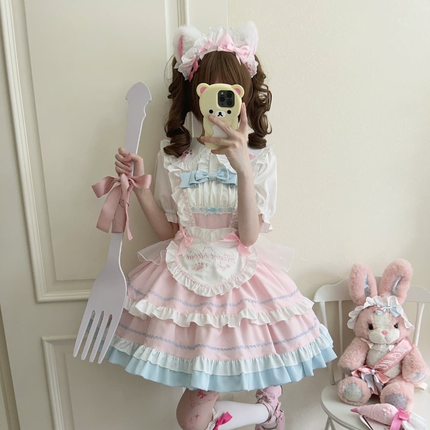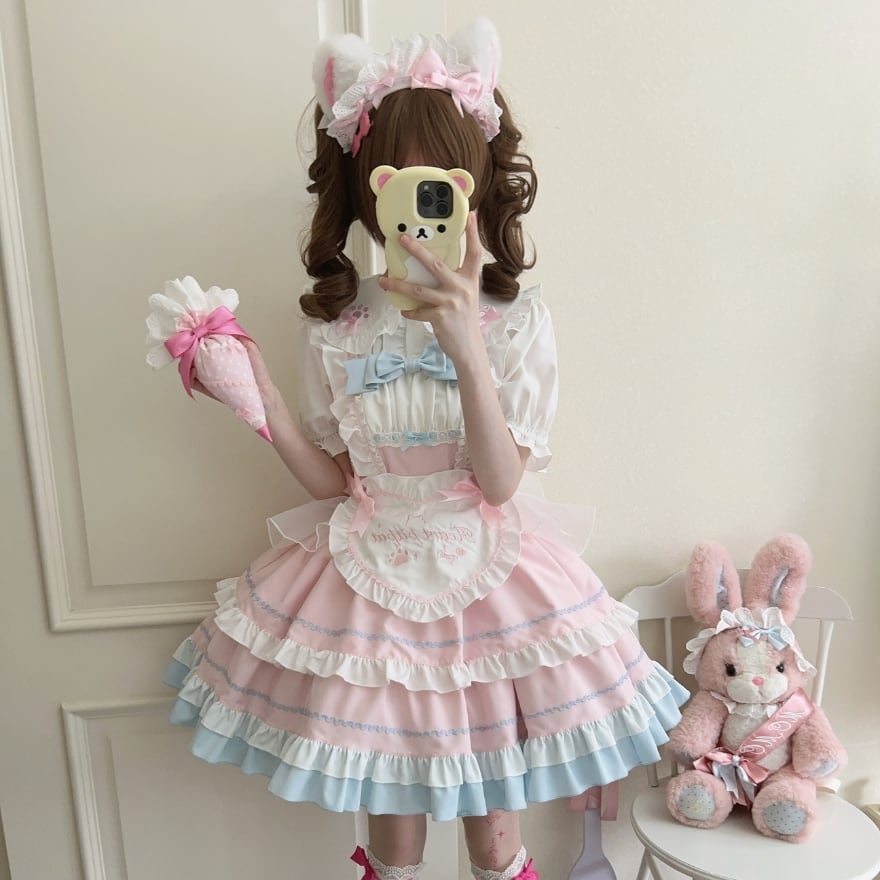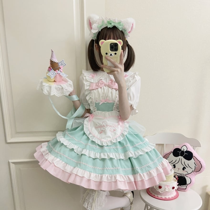 関連キーワード: #ロリィタ #メイド服 #フレンチメイド #甘ロリ #ゆめかわ #パステルカラー #フリル #ティアード #リボン #可愛い #セットアップ