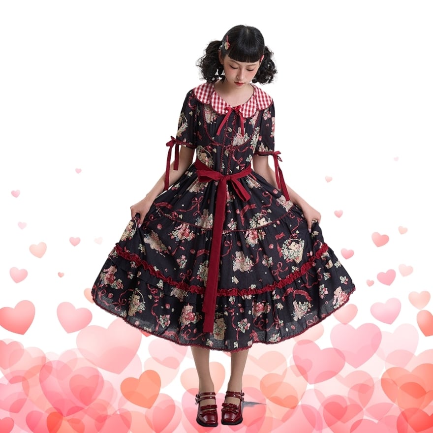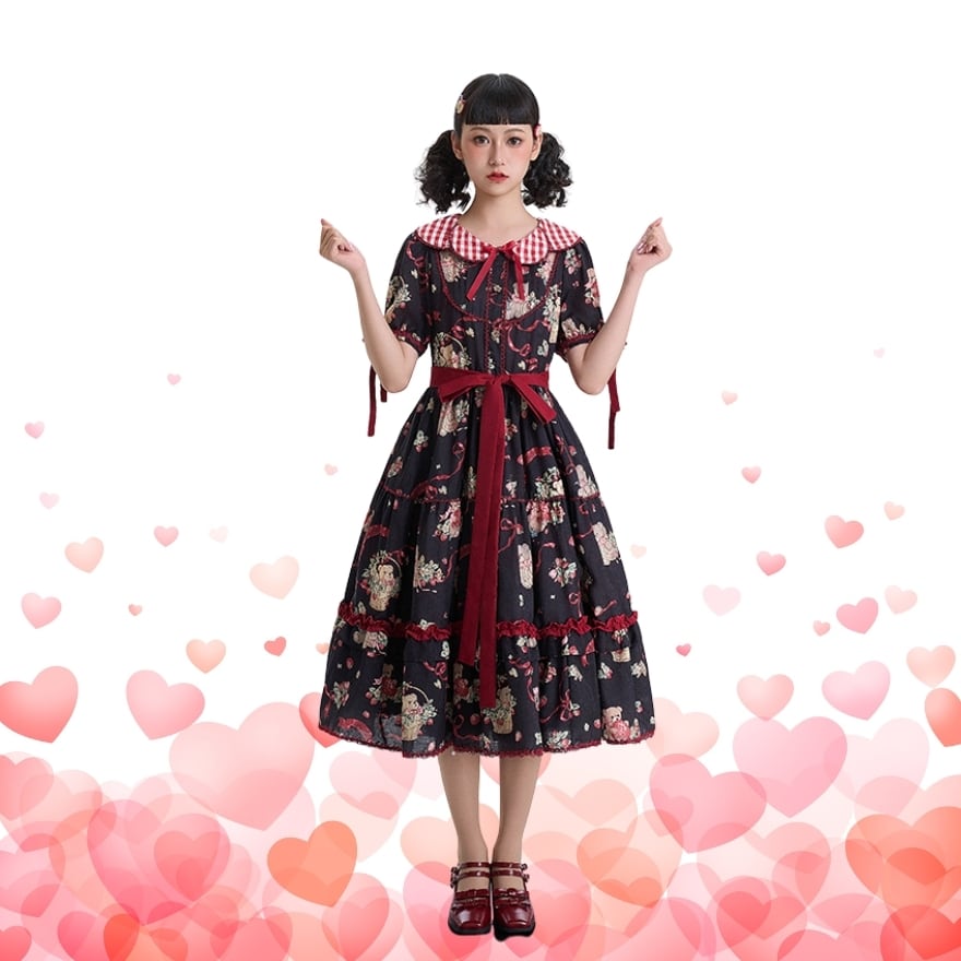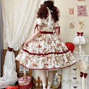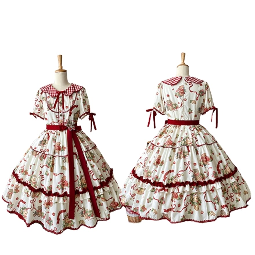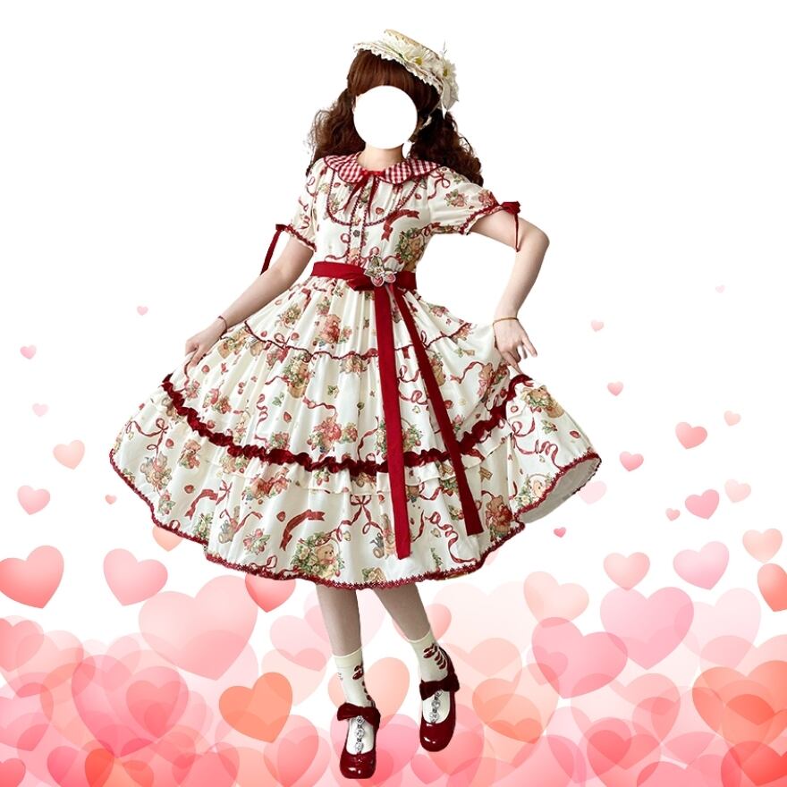 SEASONZ クラシカルロリィタ ワンピース 半袖 プリント柄 くまちゃん ストロベリー かわいい