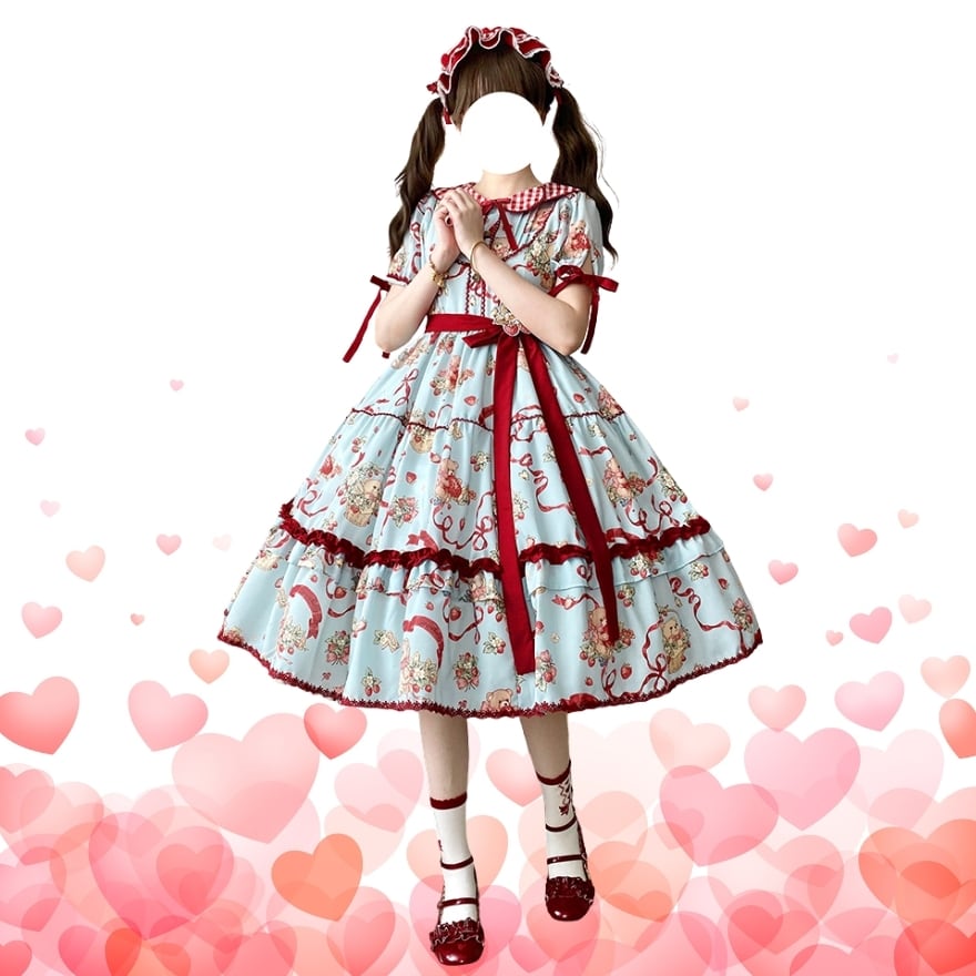 関連キーワード: #ゆめかわいい #甘ロリ #ワンピース #クマ #イチゴ #ロリィタ #プリント柄 #フリル #リボン #パステルカラー #メルヘン #ドール